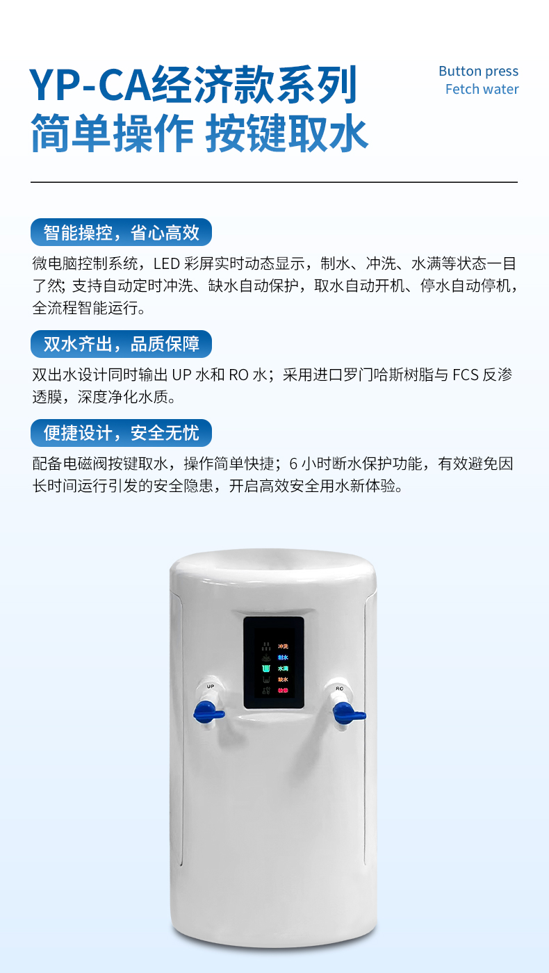 5. 取水自動開機,不用水自動停機,用電省,維護方便,徹底取代傳統蒸餾水器