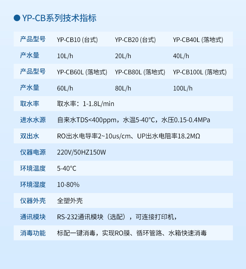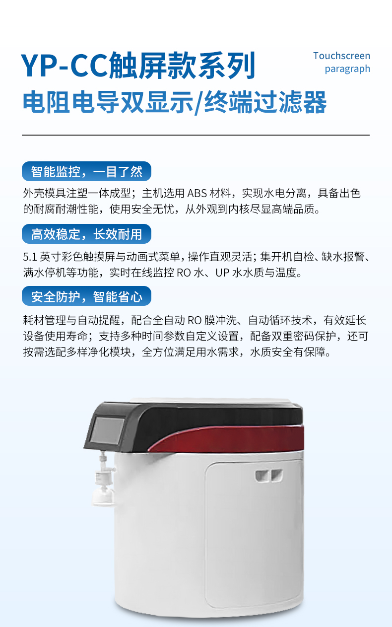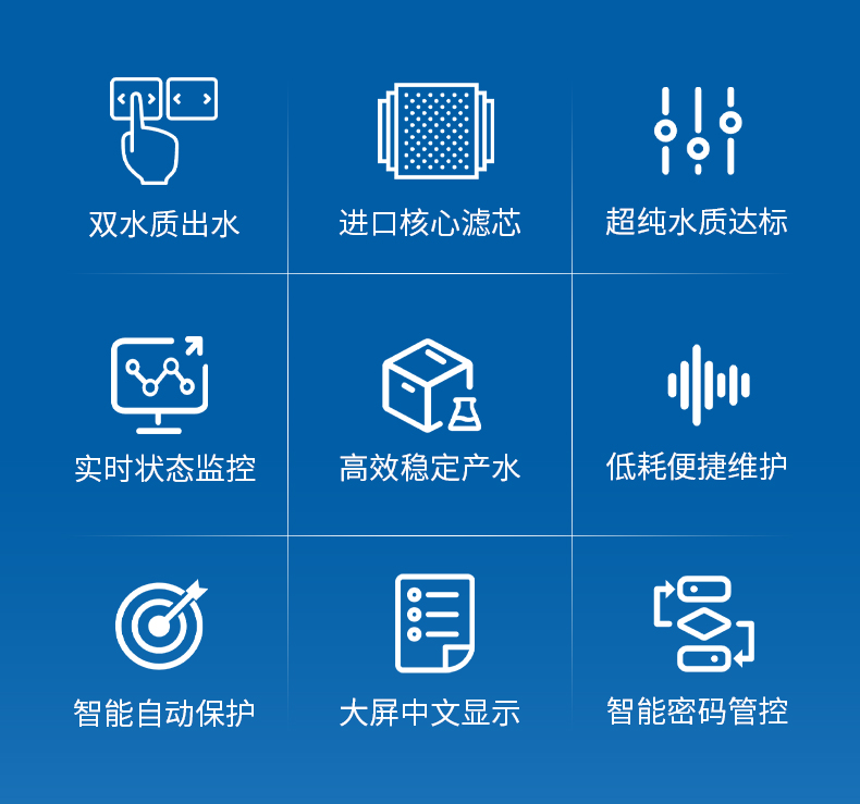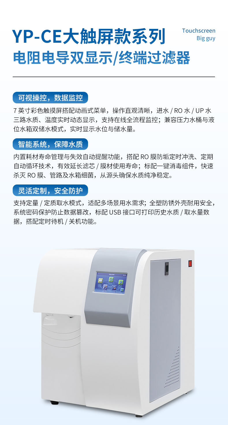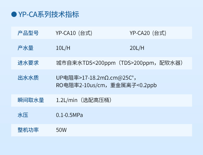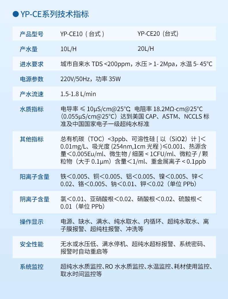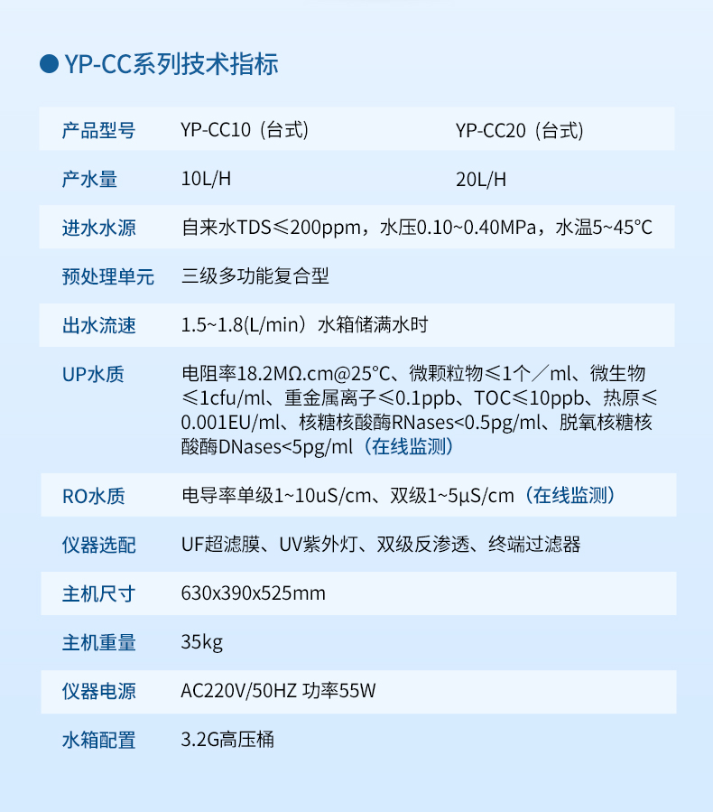 3.出水水質:UP電阻率>17-18.2mΩ.cm@25C°