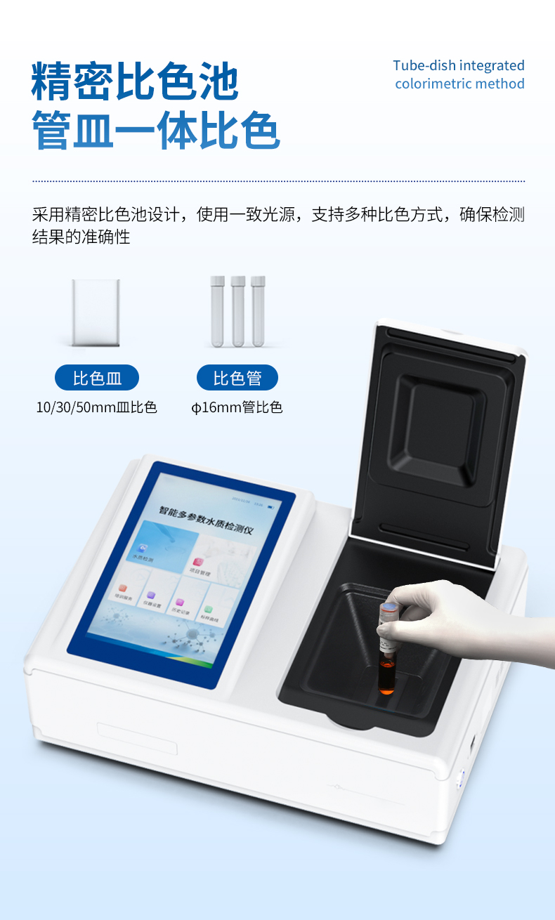 3、采用精密比色池設計,使用光源一致,可以解決由于光源誤差帶來的檢測結果誤差問題,檢測結果更加精準。