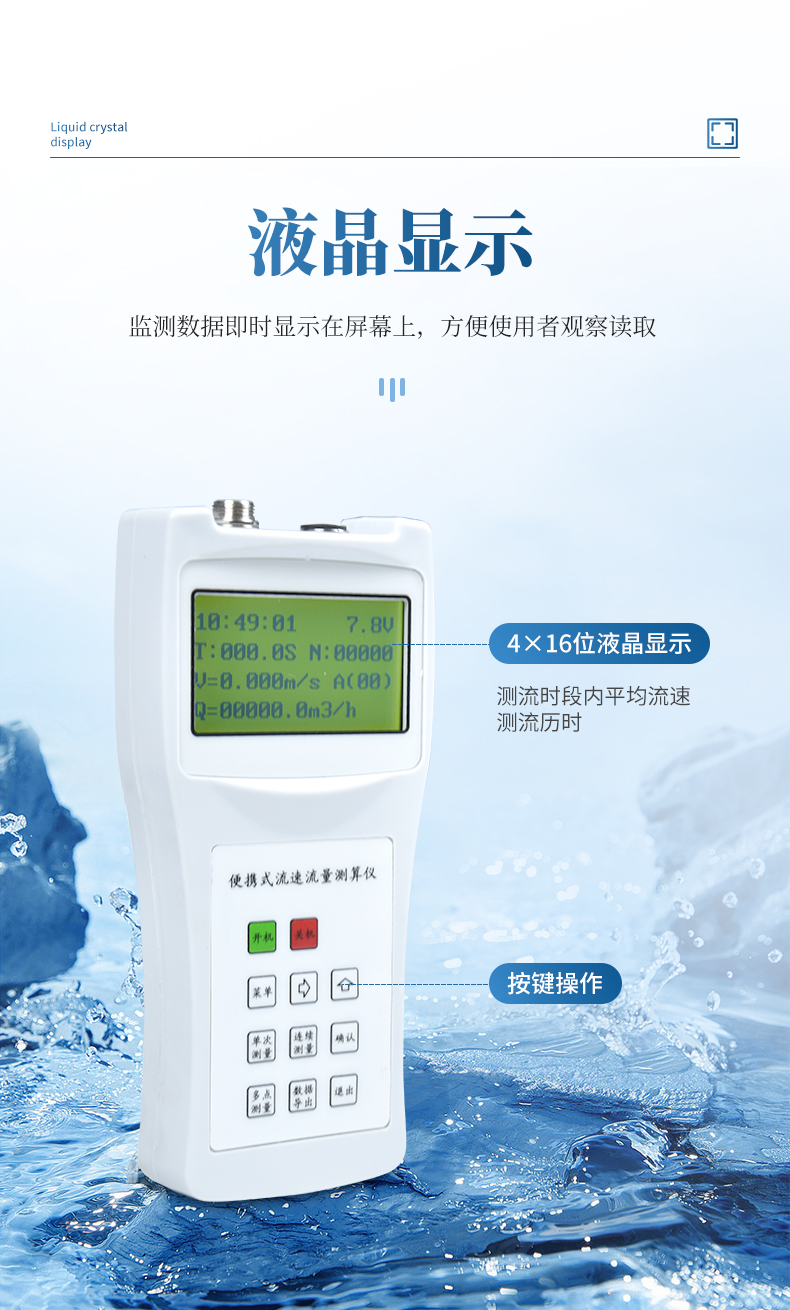 流速流量測算儀(簡稱便攜式流速儀)是一種在水文測驗中進行流速測量的通用型儀器,用于江河、湖泊、水庫、水渠等過水斷面中預定測點的時段平均流速的測量。