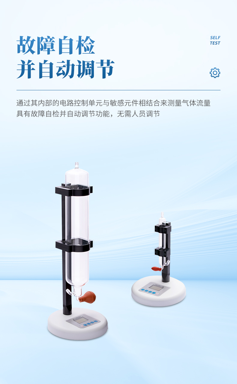 該系列電子皂膜流量計由單片機、紅外傳感器、前置電路、驅動電路、按鍵、顯示器、電源等部分組成,通過其內部的電路控制單元與敏感元件相結合來測量氣體流量,具有故障自檢并自動調節功能,無需人員調節。內置換算功能,可以進行工況流量與標準流量的轉換??蓡未螠y定氣體流量,也可以對流量多次測定后取平均值(測定次數可設定)。
