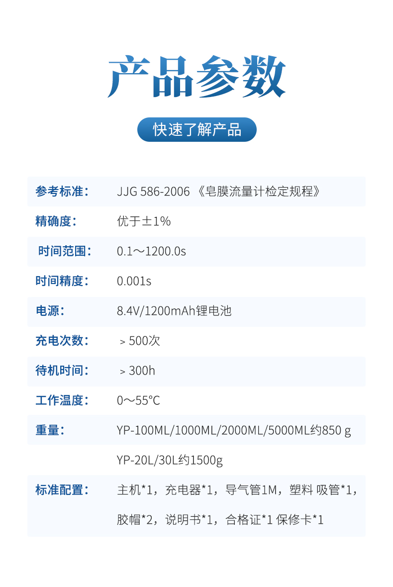 YP系列電子皂膜流量計用于測定氣體體積流量,屬于一級流量計,精度優于±1%。