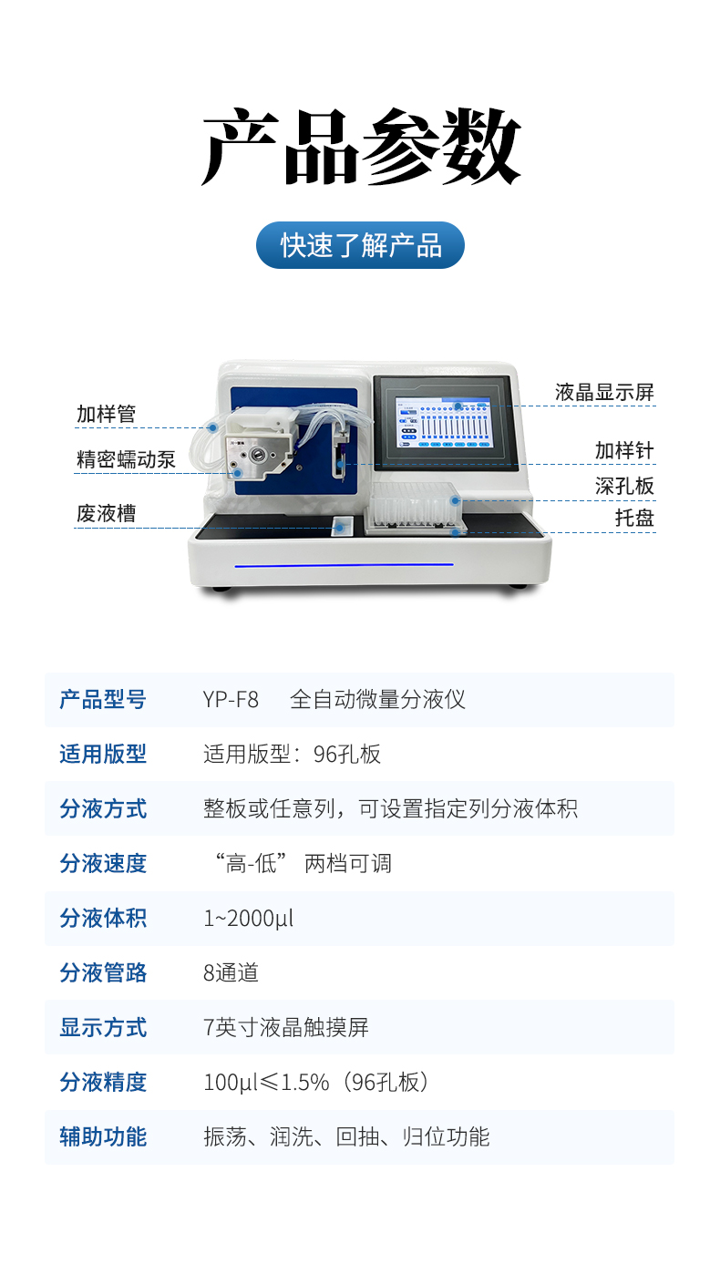 全自動微量分液儀(以下簡稱“分液儀”)是一種配備高精度蠕動泵的分液設備,能夠快速、精確、一致的完成自動化分液操作??蓮V泛應用于疾控篩查、食品檢測、動物檢疫、生命科學研究等領域。解放實驗員雙手,在提高效率的同時避免錯誤。