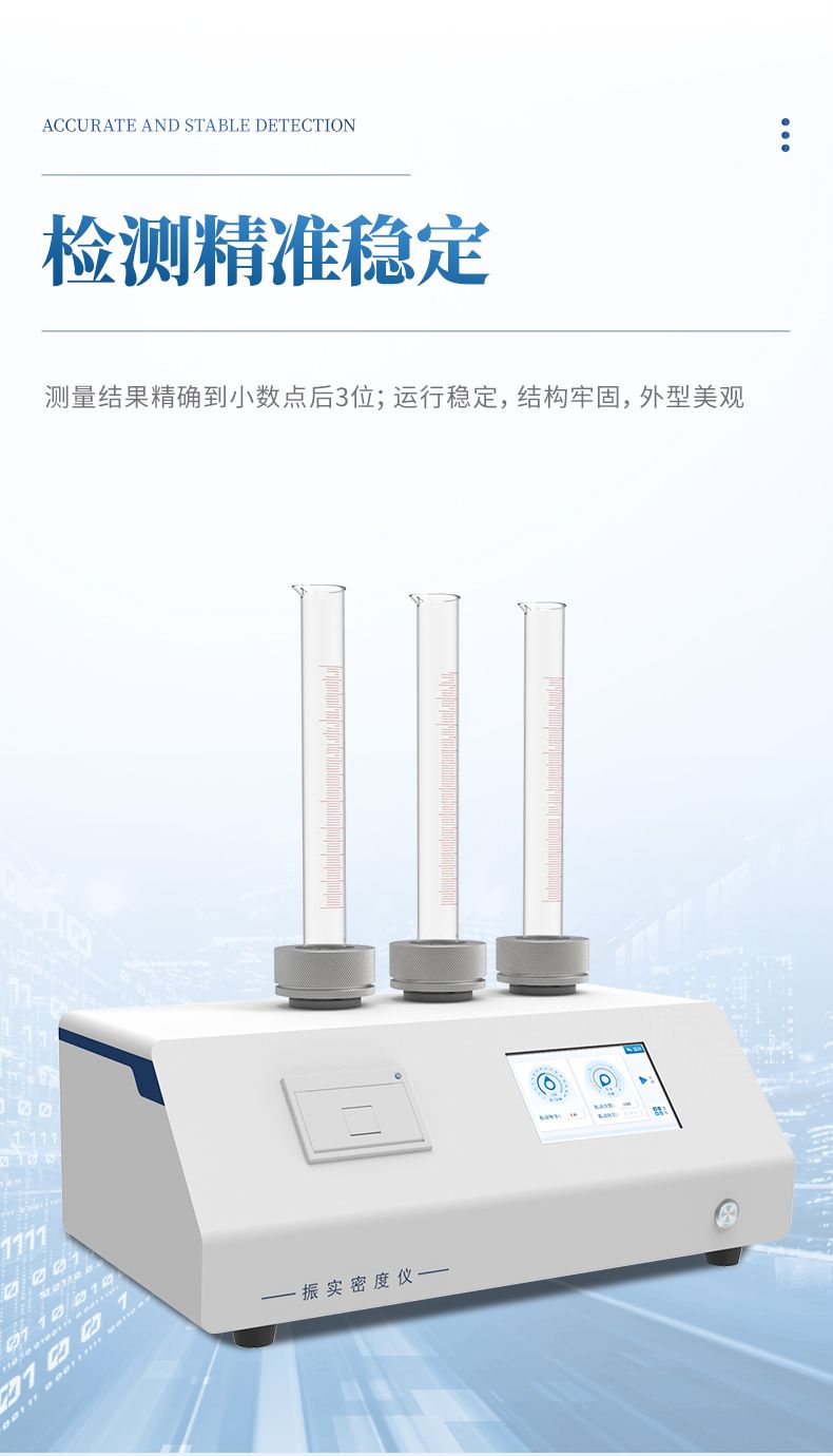 振實密度儀是一種通過模擬實際工況中的振動條件,精確測定粉末或顆粒材料在振實狀態下密度的高精度儀器。其核心功能是評估材料在壓實過程中的體積變化,為工業生產、研發和質量控制提供關鍵數據支持。