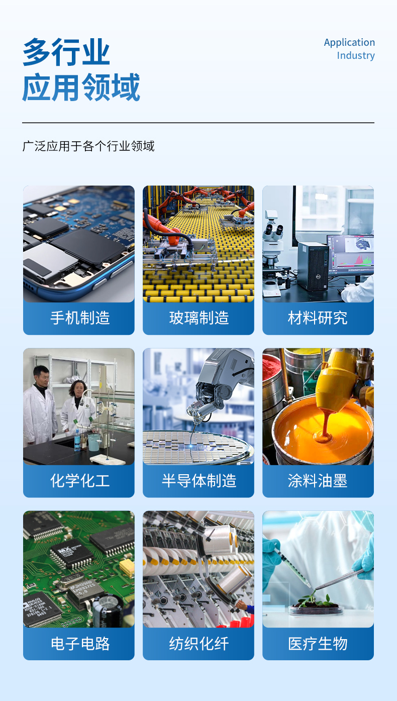 接觸角測量儀廣泛應用于各個行業領域,在手機制造、玻璃制造、表面處理、材料研究、化學化工、半導體制造、涂料油墨、電子電路、紡織纖維、醫療生物等領域,接觸角測量已經成為了一項評估表面性能的重要儀器。