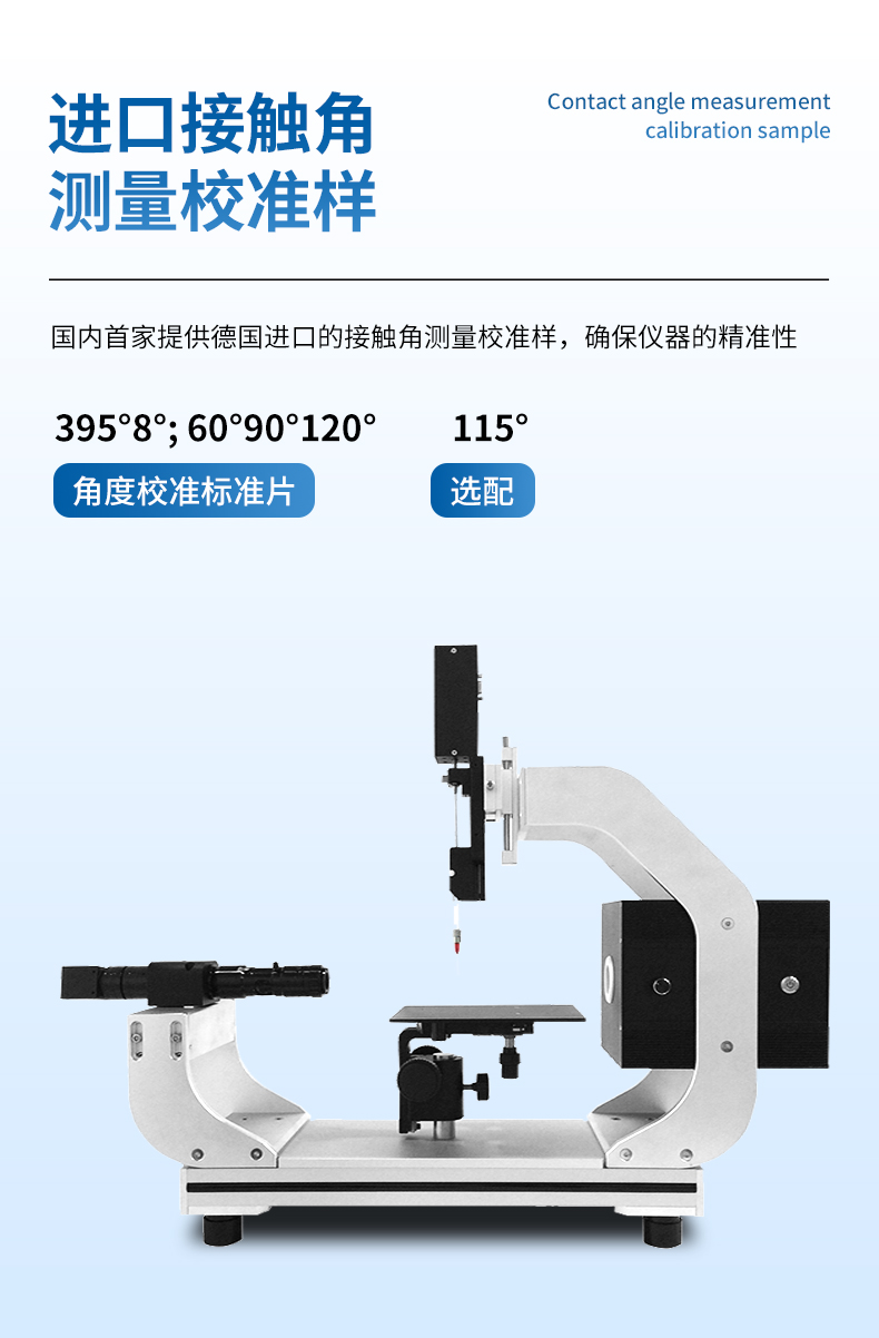 6. 國內首家提供德國進口的接觸角測量校準樣,確保儀器的精準性,角度校準標準片15°30°60°90° 120°(選配);