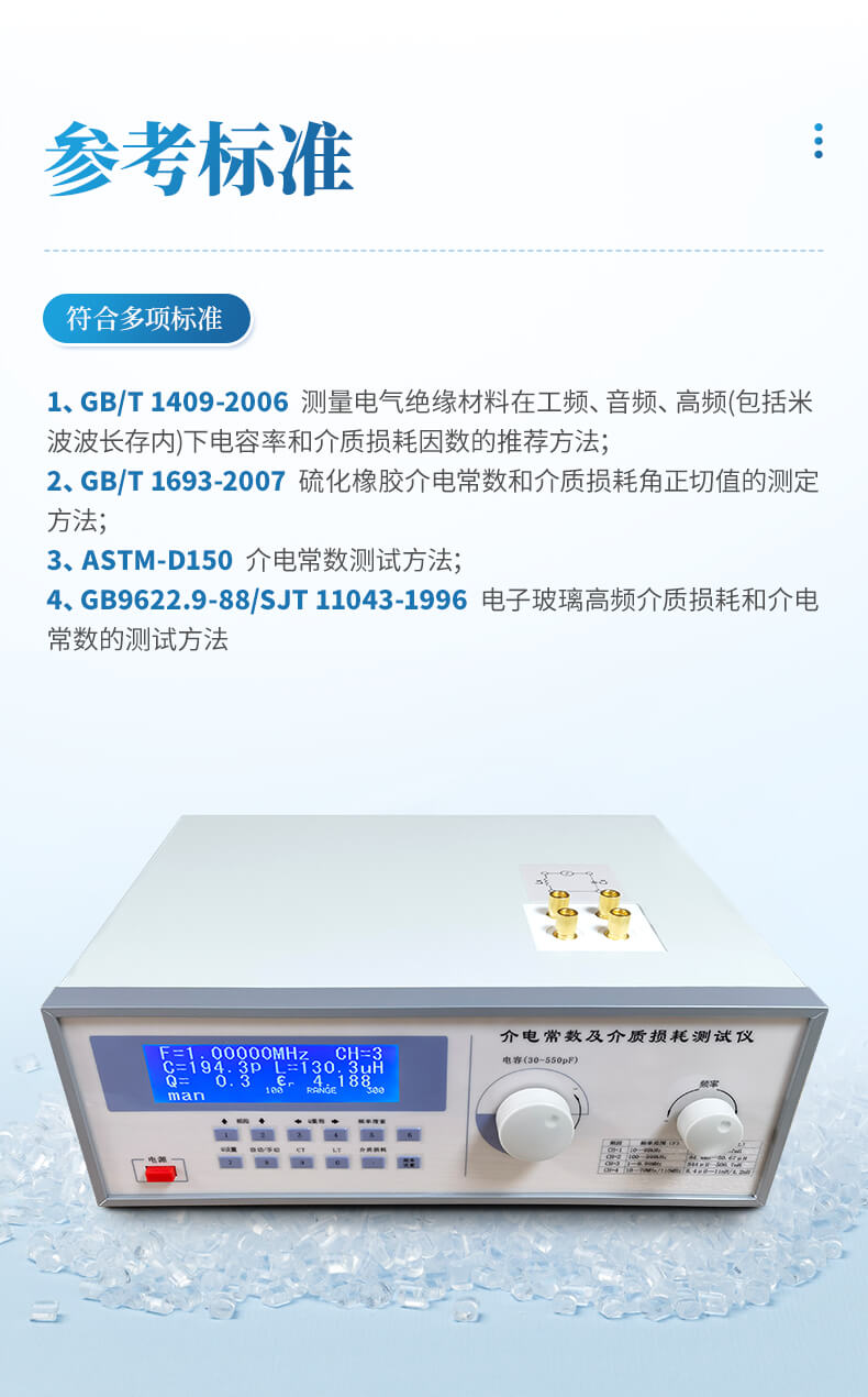 u GB/T 1409-2006 測量電氣絕緣材料在工頻、音頻、高頻(包括米波波長存內)下電容率和介質損耗因數的推薦方法;