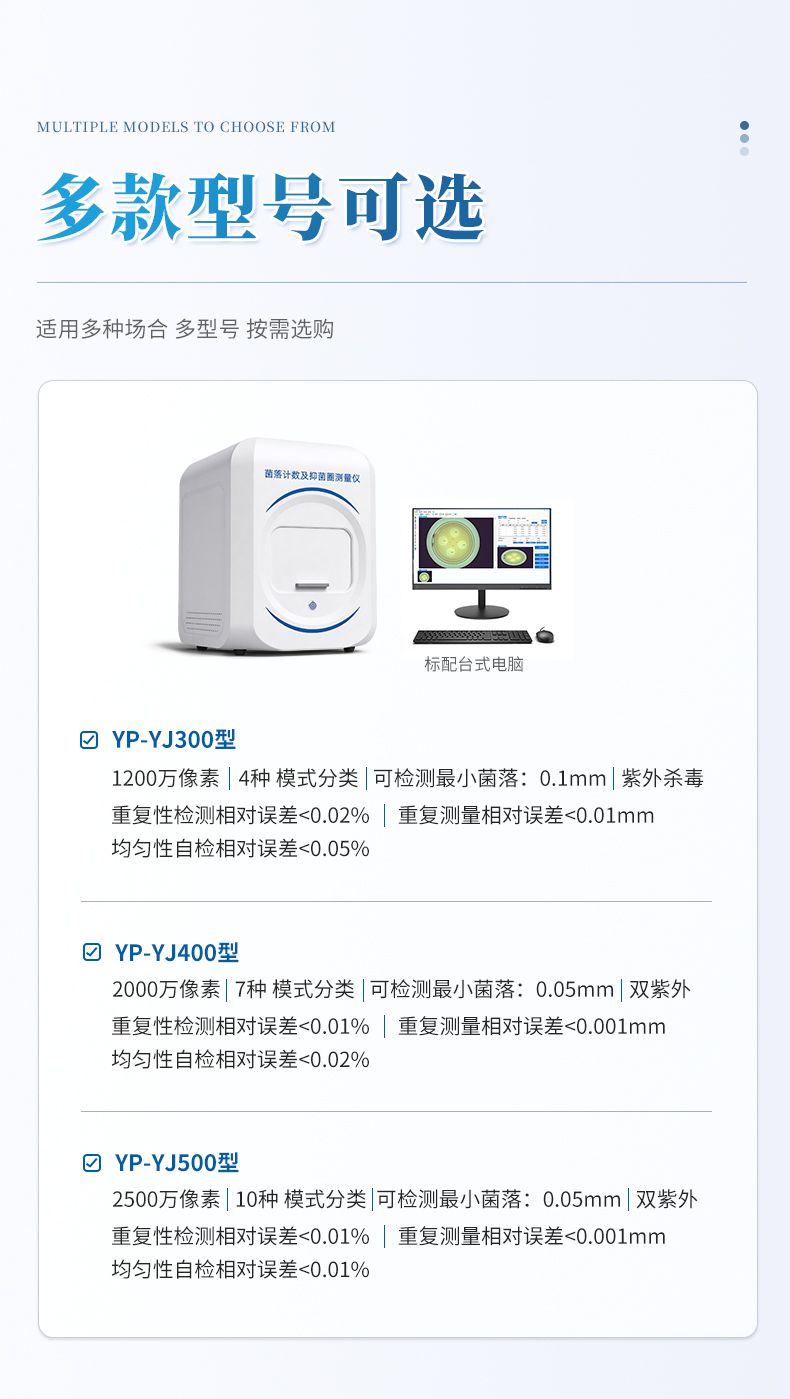 本產(chǎn)品是一款集圖像采集、數(shù)據(jù)處理與統(tǒng)計(jì)分析于一體的全自動(dòng)菌落計(jì)數(shù)及抑菌圈測(cè)量?jī)x,廣泛應(yīng)用于食品、藥品、化妝品、環(huán)境監(jiān)測(cè)、醫(yī)療衛(wèi)生、科研院校等領(lǐng)域。儀器采用先進(jìn)的數(shù)字圖像處理技術(shù),具備熒光菌識(shí)別、抑菌圈測(cè)量及效價(jià)測(cè)定和殺菌功能,可快速精準(zhǔn)完成培養(yǎng)皿內(nèi)菌落的測(cè)量分析、抑菌圈測(cè)量及抗生素效價(jià)測(cè)定,大幅提升實(shí)驗(yàn)效率,有效降低人工操作誤差。