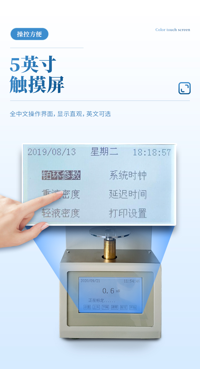 符合GB6541-86(ISO6295--1983)的方法要求,采用圓環(huán)法在非平衡的條件下,測量各種液體表面張力及礦物油與水的界面張力,能可靠的指示出親水氧化物的存在情況。采用最新數(shù)字處理技術(shù),提高了儀器的快速響應能力和抗干擾能力,全中文交互式菜單,人機界面簡潔友好。 并可選配臺式熱敏微型打印機,可自動打印測試結(jié)果。