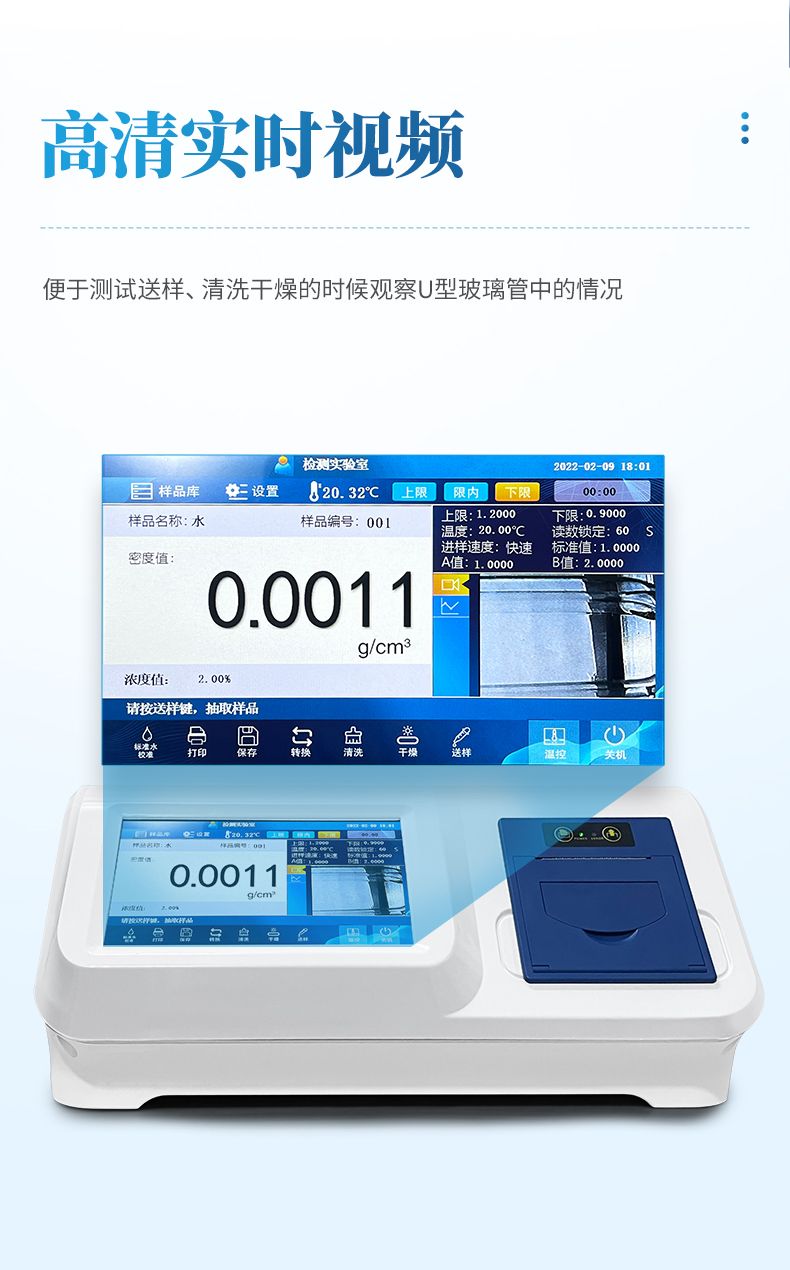 5.高清實(shí)時(shí)視頻:便于測(cè)試送樣、清洗干燥的時(shí)候觀察U型玻璃管中的情況。