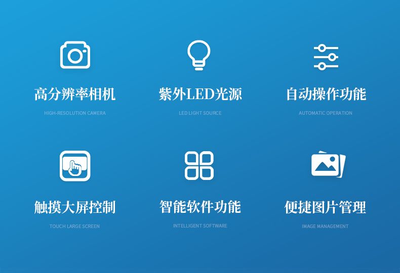 采用 13.3 寸觸摸屏控制,內存 16G,256G 固態硬盤,使儀器具有更強大圖像計算及 處理能力,配合圖像采集軟件操作簡捷直觀,軟件具有自動采集信號,并進行自己處理合 成功能;曝光模式分為自動曝光、手動曝光、以及自動定義曝光功能。配合圖像分析軟件 可對圖像信號進行定性定量分析。