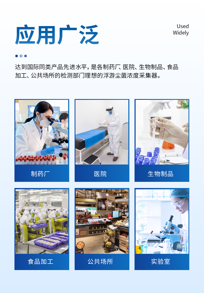 浮游細菌采樣器具有采樣量大、性能穩定、操作簡便等特點,達到國際同類產品先進水平,是各制藥廠、醫院、生物制品、食品加工、公共場所等的檢測部門理想的浮塵菌濃度采樣儀器。