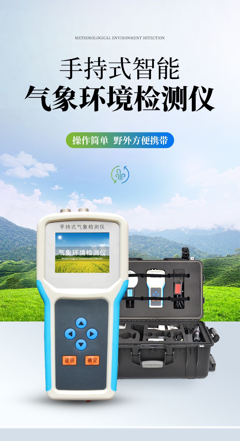 手持式智能農業氣象環境檢測儀是我們專門針對農田、草場局部小尺度環境設計的,對與植被和農作物生長密切相關的土壤、水氣等環境參數監測的農田小氣候站。它主要觀測與農業相關的空氣溫度、空氣濕度、光照強度、二氧化碳濃度、露點溫度、光合有效輻射、土壤溫度、土壤水分、土壤鹽分、土壤PH、風速、風向、降雨量、大氣壓力、總輻射、葉面溫度等16個環境參數氣象要素,為農業科研、農業生產等提供良好的支持。