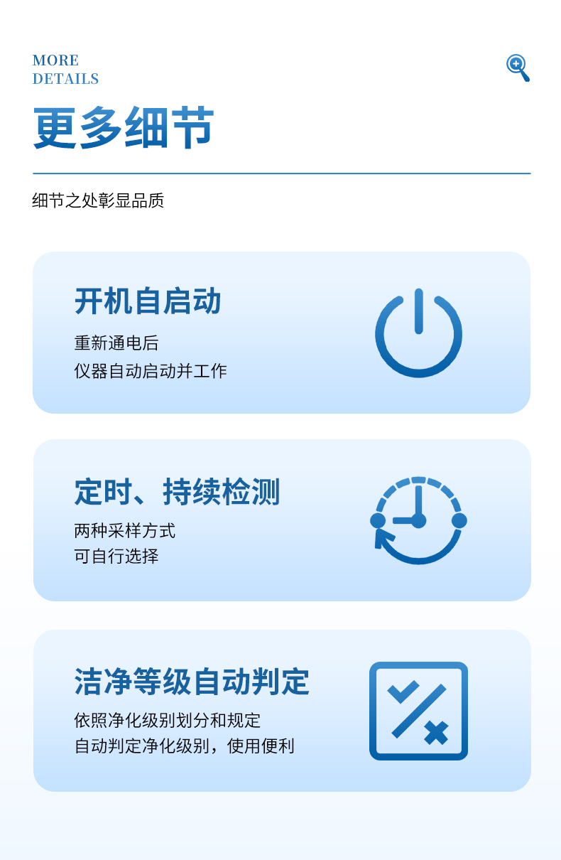 5、依照凈化級別劃分和規定,自動判定凈化級別,使用便利。