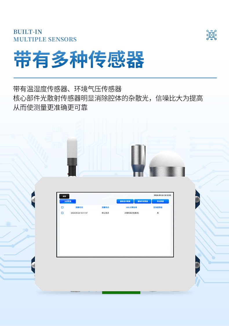 4、核心部件光散射傳感器明顯消除腔體的雜散光,信噪比大為提高。從而使測量更準確更可靠。
