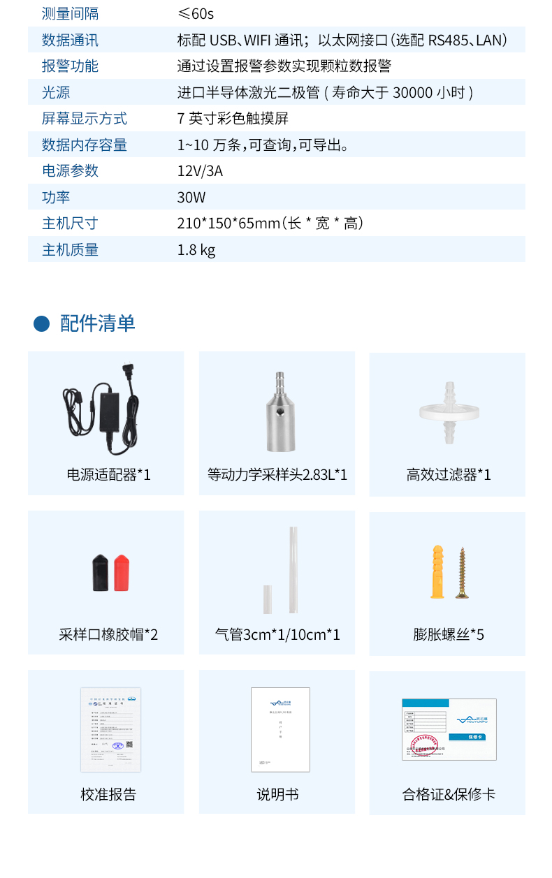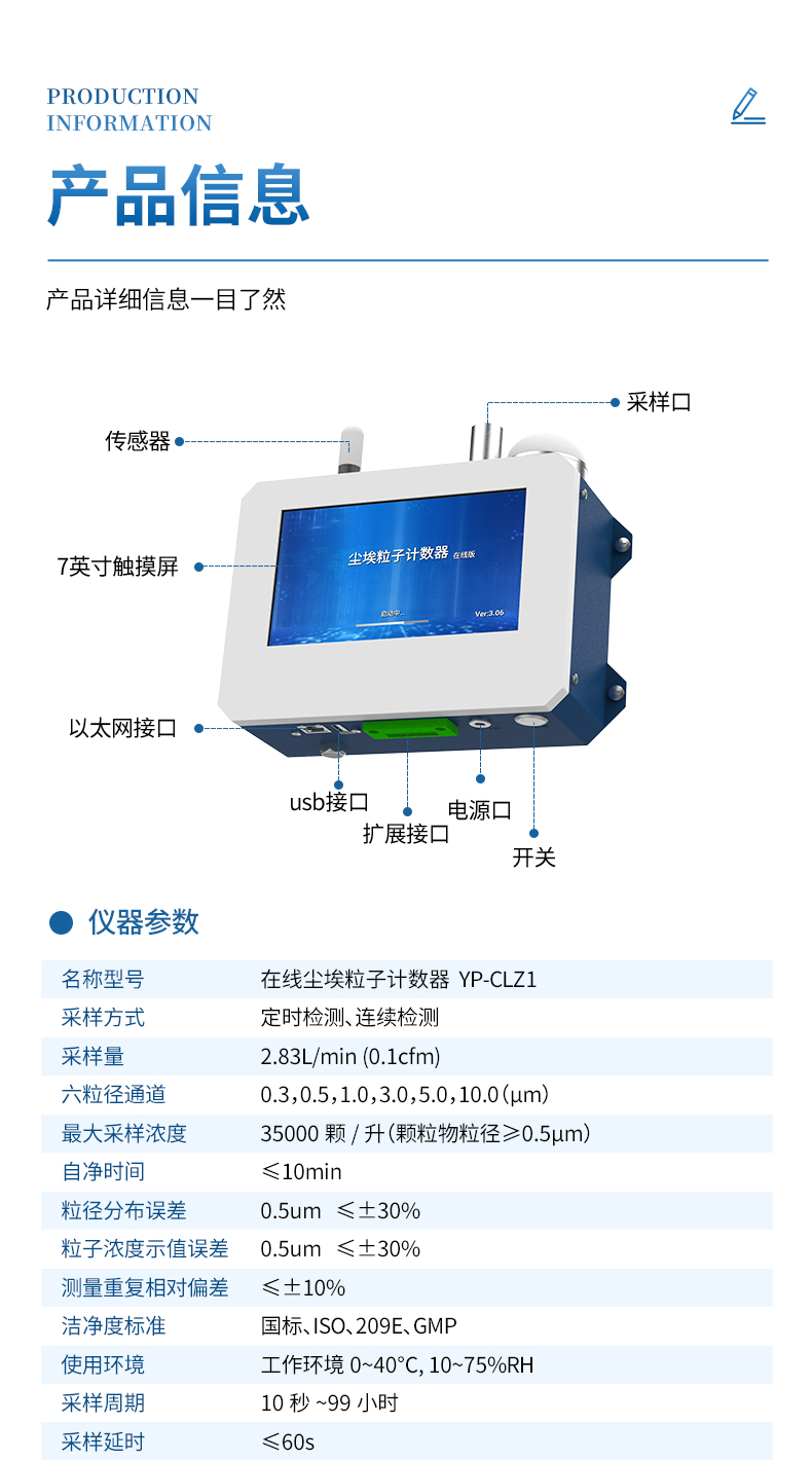 最大采樣濃度:35000顆/升(顆粒物粒徑≥0.5μm)