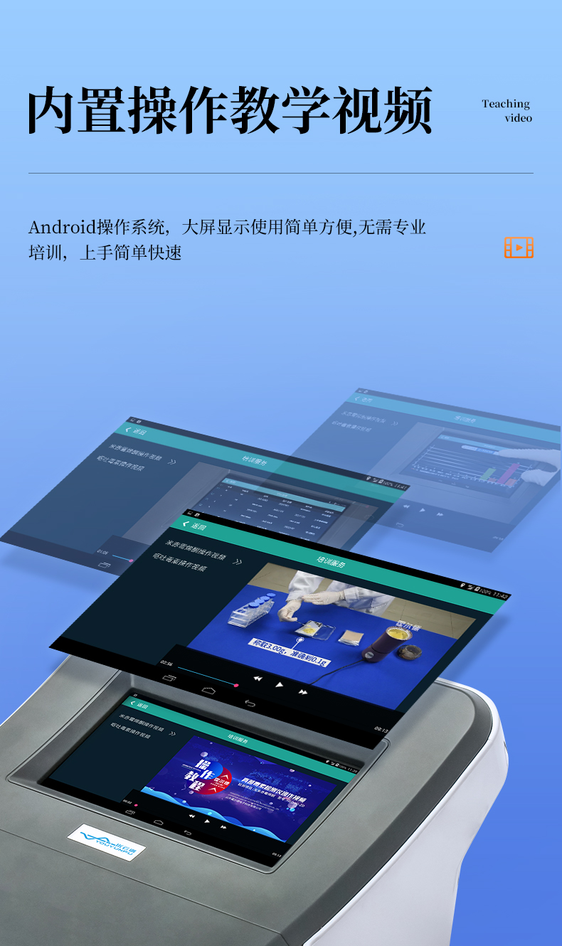 7、使用簡單方便:儀器內(nèi)置檢測項(xiàng)目操作視頻,無需專業(yè)培訓(xùn),邊觀看儀器內(nèi)置操作視頻,邊做實(shí)驗(yàn),上手簡單快速。