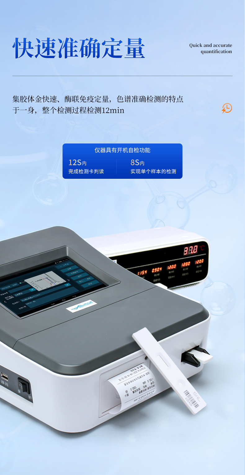 2、快速準(zhǔn)確定量:集膠體金快速,酶聯(lián)免疫定量、色譜準(zhǔn)確檢測的特點(diǎn)于一身,實(shí)現(xiàn)快速準(zhǔn)確定量檢測;