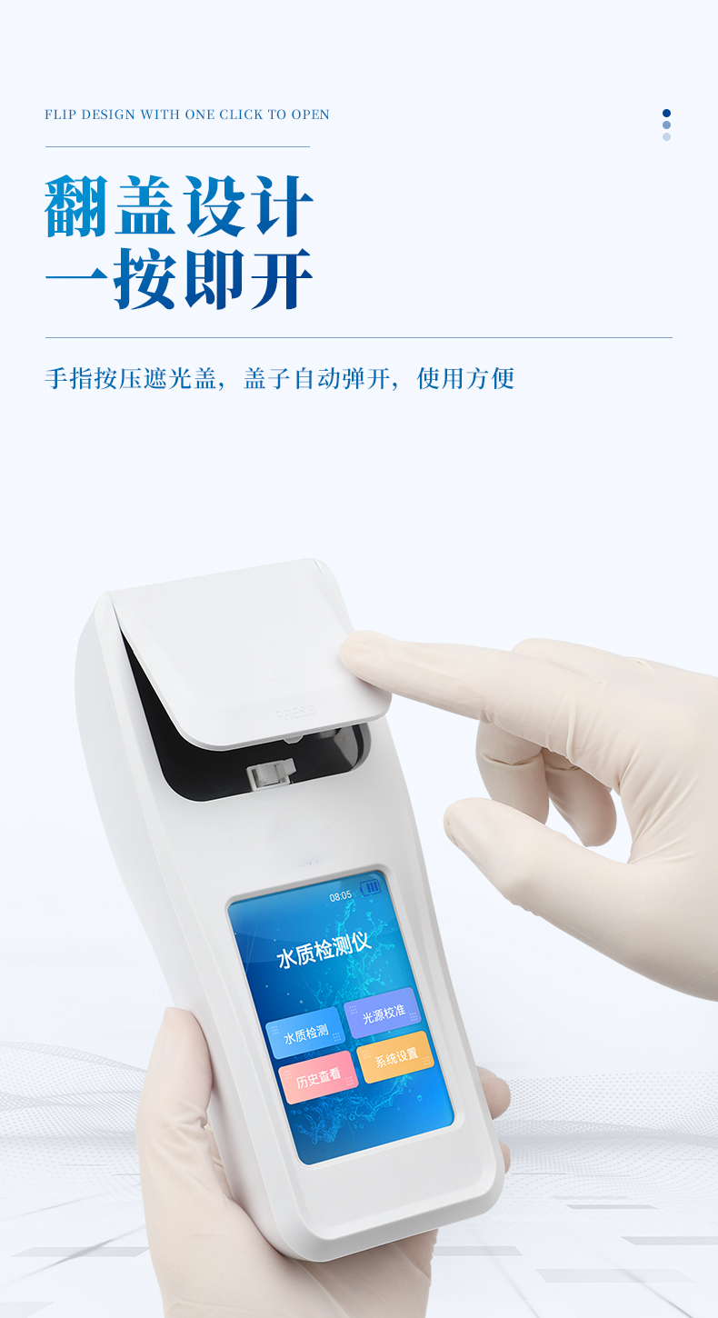 色度檢測儀配合快速顯色檢測試劑,可“快速、簡單、準確、穩定”進行水中色度指標的測量,該儀器擁有精美的外觀造型,簡單的操作界面,準確的檢測系統,幫助用戶獲得精細的數據,可更準確、有效的分析水體狀況,提前預防,及時避免損失。