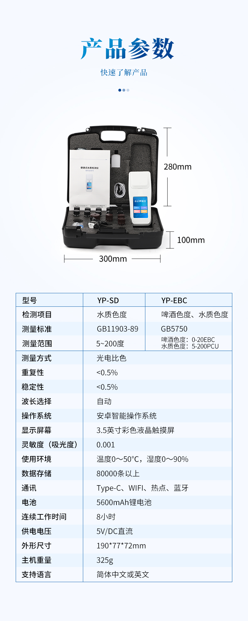 ⑥便攜式體積小,重量輕,方便戶外檢測;