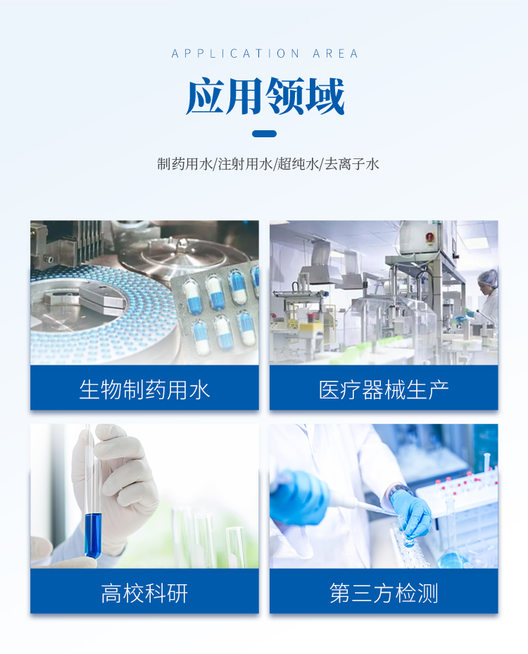 藥用水(純化水、注射用水)的離監測和實驗室測試,以及清潔驗證;電子行業、食品行業等。