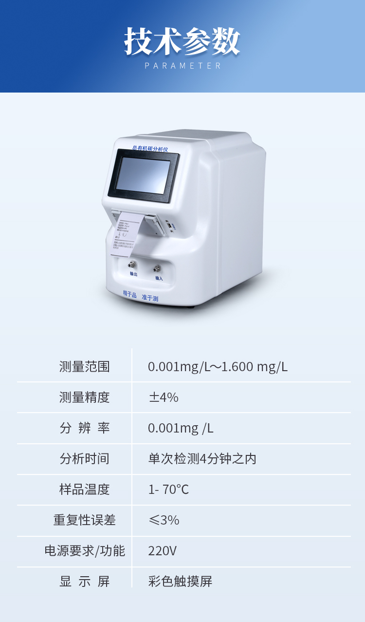 【產品簡介】精度:±4%;分辨率:0.001mg /L;電源要求/功能:220V;樣品溫度:1- 70°C;