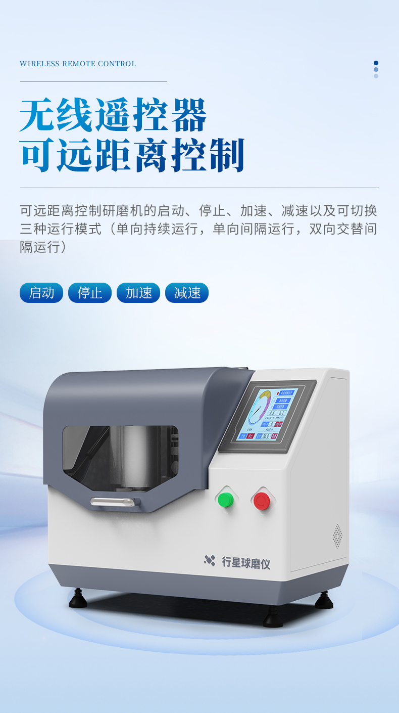 遠(yuǎn)程遙控:標(biāo)配無線遙控器,可遠(yuǎn)距離控制研磨機(jī)的啟動、停止、加速、減速以及可切換三種運(yùn)行模式(單向持續(xù)運(yùn)行,單向間隔運(yùn)行,雙向交替間隔運(yùn)行)