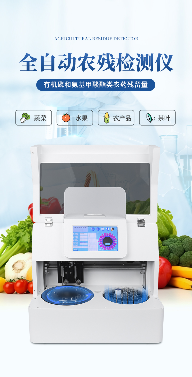 全自動農藥殘留檢測儀是利用酶抑制原理和光電比色法原理研制而成。在一定條件下,有機磷和氨基甲酸類農藥對膽堿酯酶正常功能有抑制作用,其抑制率與農藥的濃度呈正相關。當樣本提取液中有一定量的有機磷農藥或氨基甲酸酯類農藥存在時,酶活性受到抑制,吸光度變高。根據該變化率,可測定出樣本中農藥的殘留量。