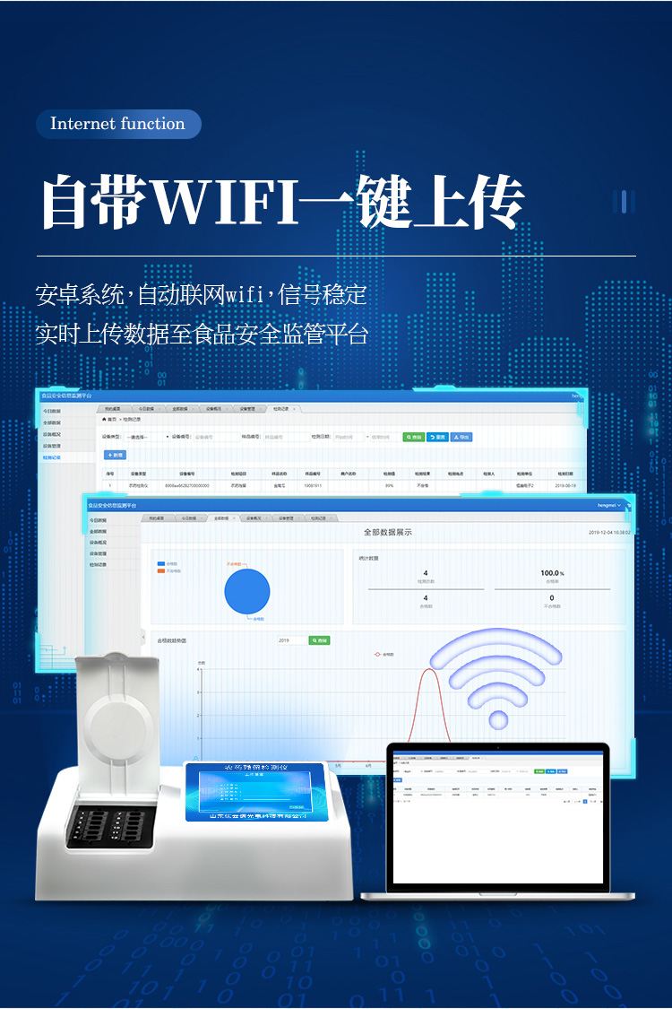 10、儀器具有GPRS遠(yuǎn)傳功能,可插手機(jī)卡實(shí)現(xiàn)數(shù)據(jù)遠(yuǎn)傳平臺,wifi聯(lián)網(wǎng)功能,可將數(shù)據(jù)快速上傳電腦,進(jìn)行數(shù)據(jù)管理與統(tǒng)計(jì)。