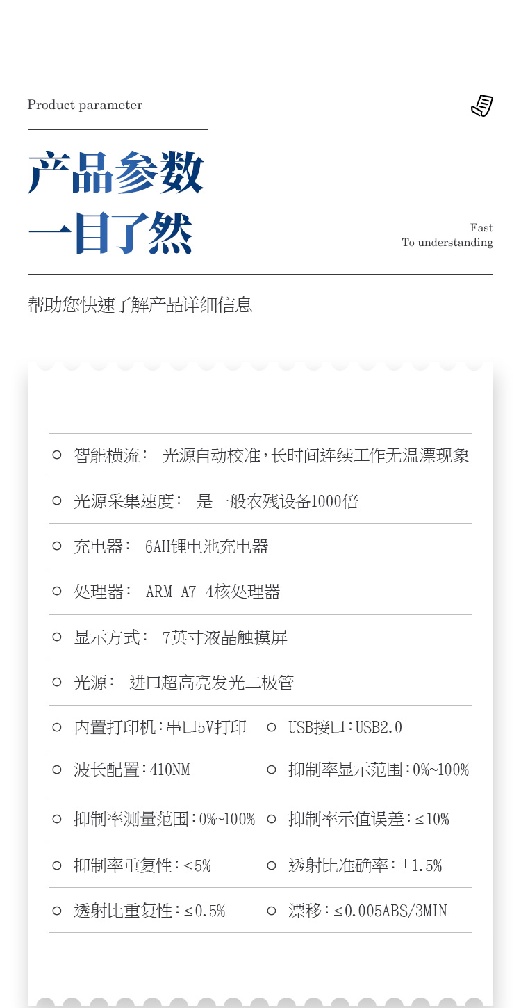 9、智能恒流穩(wěn)壓,光強(qiáng)自動校準(zhǔn),長時間連續(xù)工作光源無溫漂現(xiàn)象。