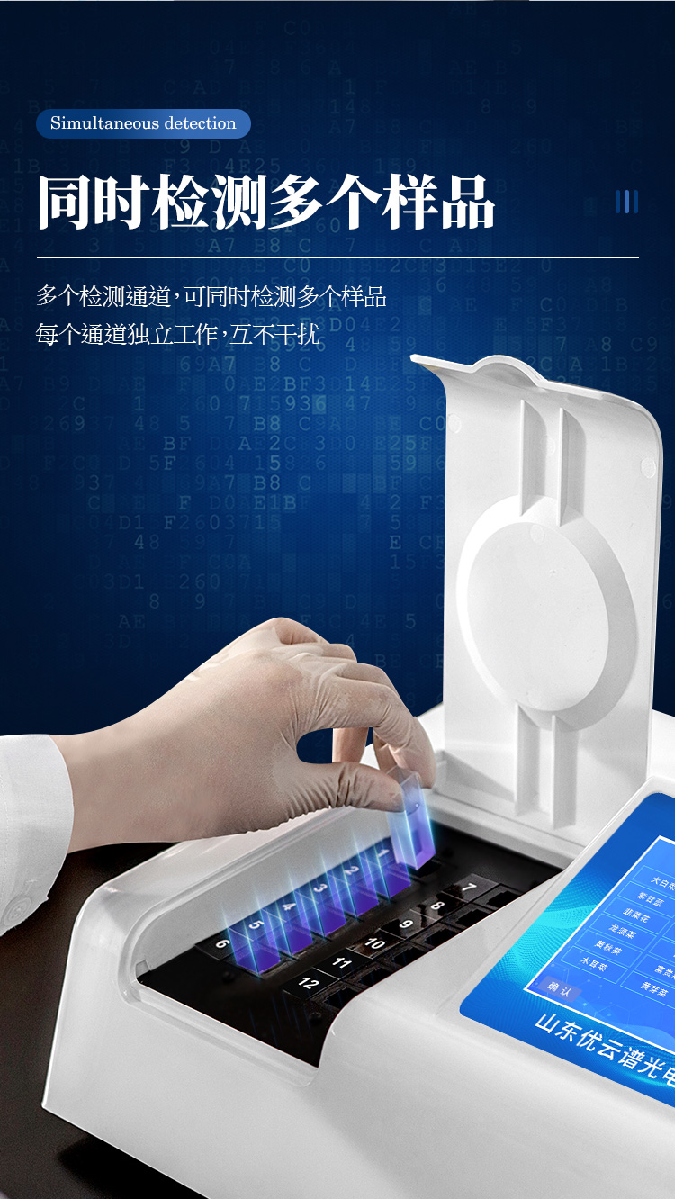 4、檢測通道:10個檢測通道,可以同時測試多個樣品,循環(huán)檢測,即放即檢,每個樣品由程序控制分別獨(dú)立工作,不會互相干擾。