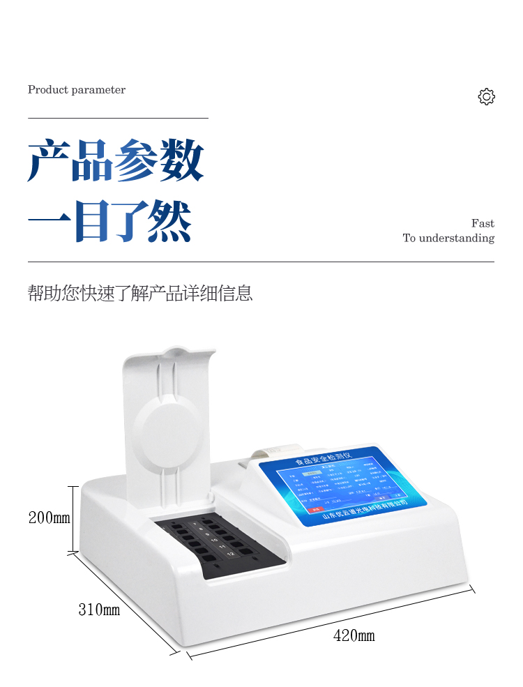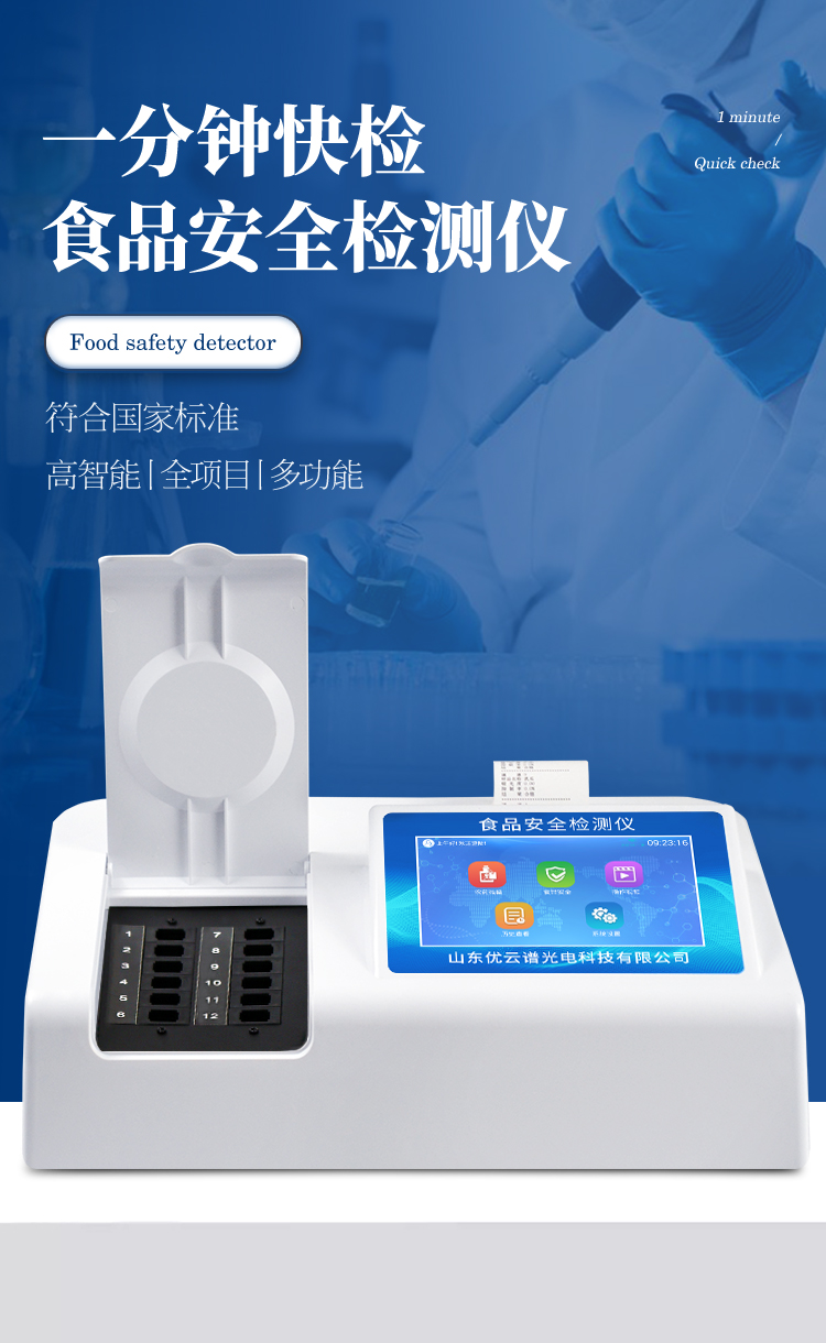 多功能食品安全檢測儀可快速檢測60多項目,包含:濫用食品添加劑、非食用化學物質、農藥殘留、重金屬含量、病害肉成分、營養強化劑、化學類殘留、食用油脂檢測、水酒飲品分析、調味品成分、食用色素等現場的定性定量檢測。