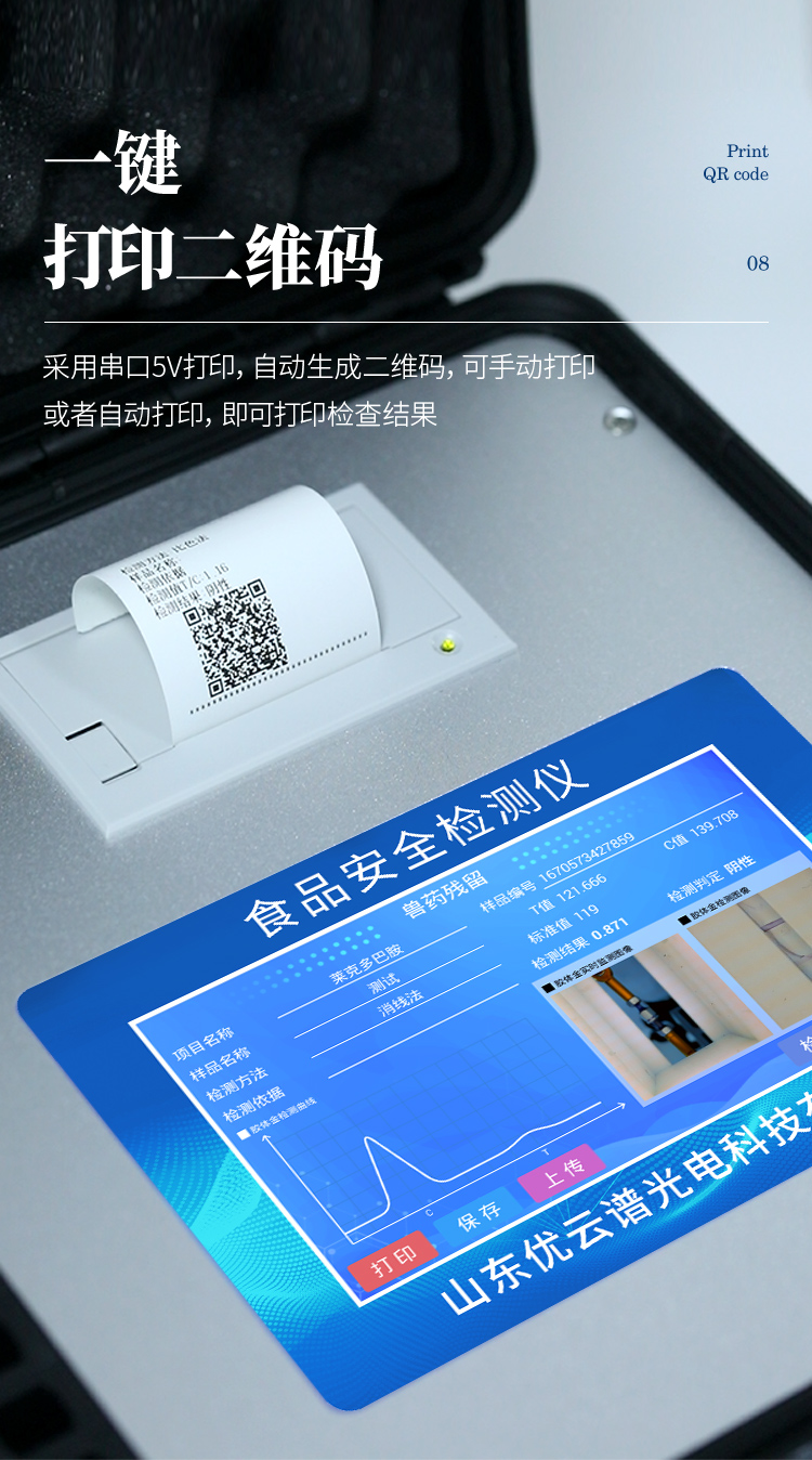 3、新一代高速熱敏打印機,檢測完成可自動打印或批量打印檢測報告和二維碼。
