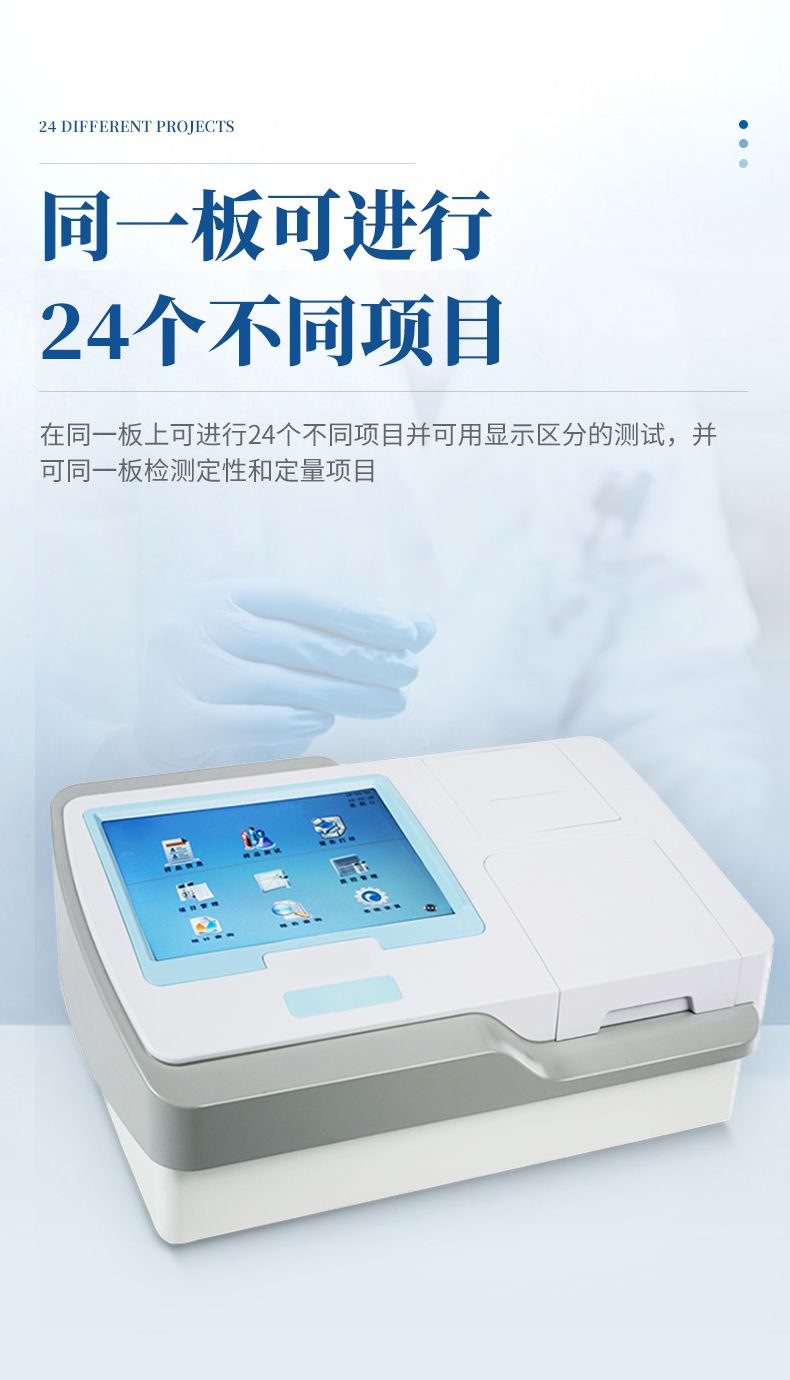 *在同一板上可進行24個不同項目并可用顯示區(qū)分的測試,并可同一板檢測定性和定量項目;