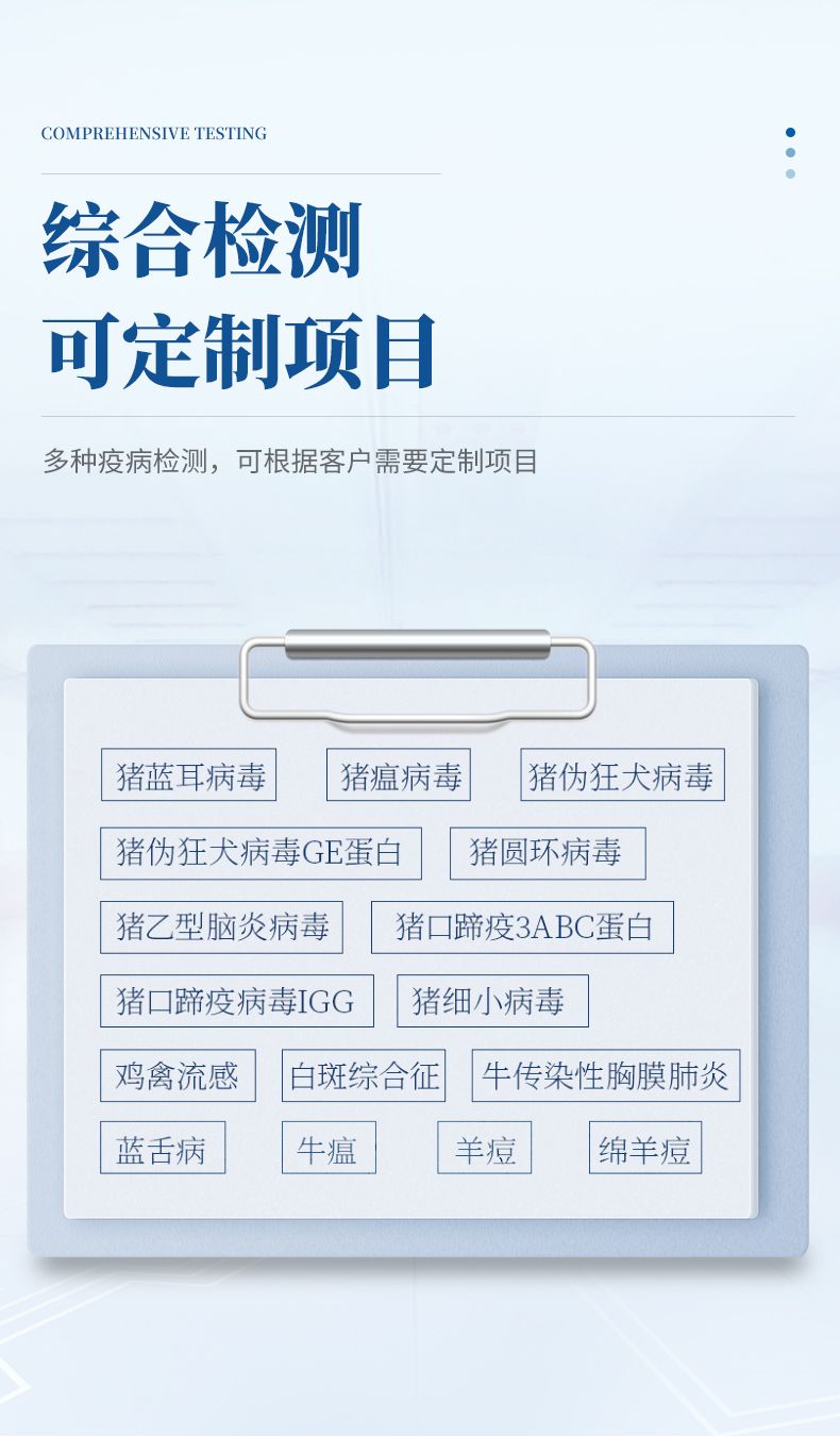 YP-SY96S動物疫病診斷儀是我公司在新推出的一款全新檢測儀器,該系統(tǒng)采用酶聯(lián)免疫吸附測定法與相應(yīng)試劑配合可定性或定量進行動物疫病快速診斷。如:豬藍耳病毒、豬瘟病毒、豬偽狂犬病毒、豬偽狂犬病毒gE蛋白、豬圓環(huán)病毒、豬乙型腦炎病毒、豬口蹄疫3ABC蛋白、豬口蹄疫病毒IgG、豬細(xì)小病毒、雞禽流感、藍舌病、白斑綜合征、牛傳染性胸膜肺炎、牛瘟、綿羊痘和山羊痘等等疫病檢測,并可根據(jù)客戶需要定制項目。