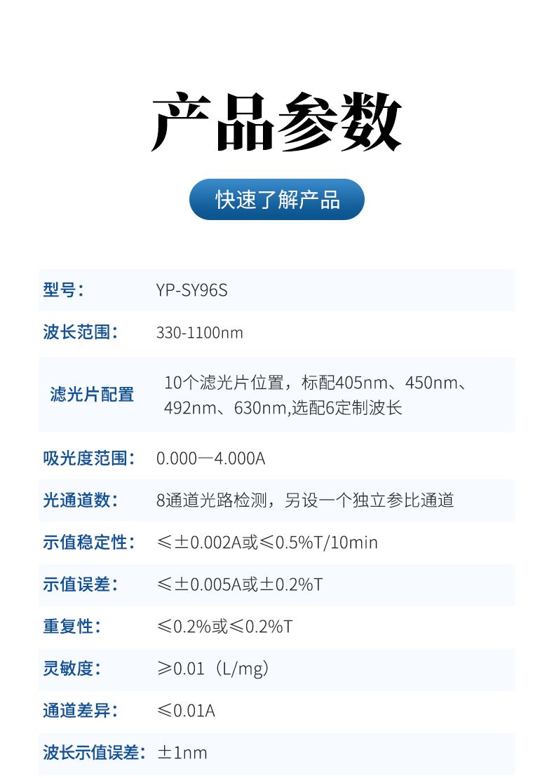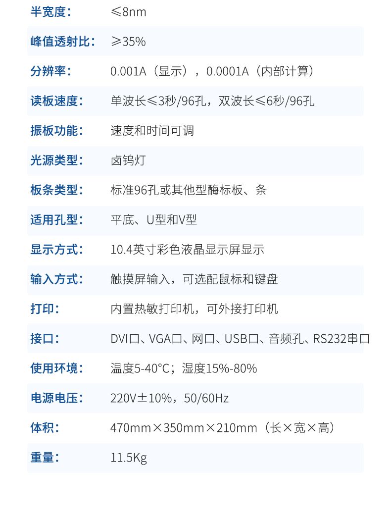 *讀板速度:單波長≤3秒/96孔,雙波長≤6秒/96孔