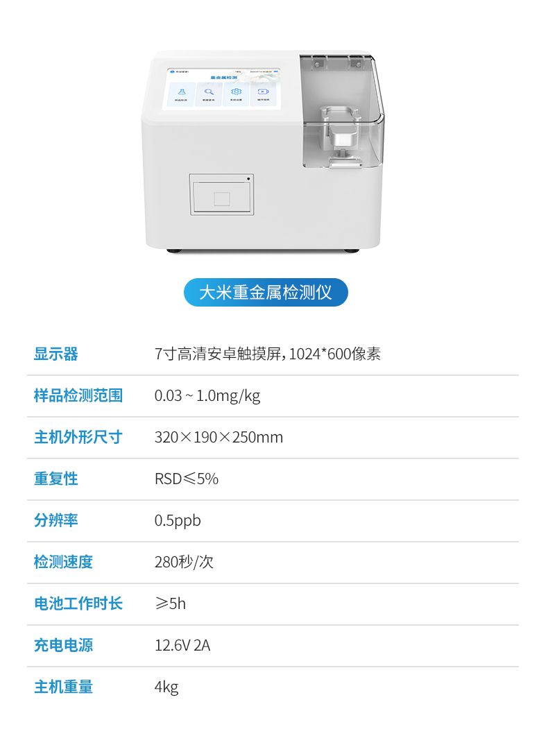 YP-TZ08重金屬檢測儀可廣泛應用于大米、糧谷、果品、蔬菜、藥材、水質、水產品中重金屬鉛、鎘、六價鉻、汞、砷、鐵、鎳、鋁的快速檢測,檢測項目可根據客戶的需求定制。