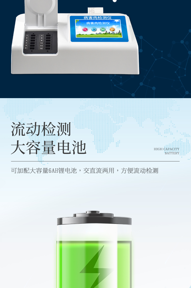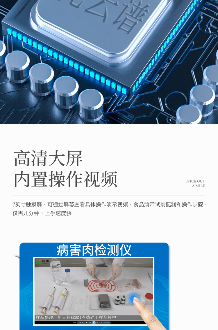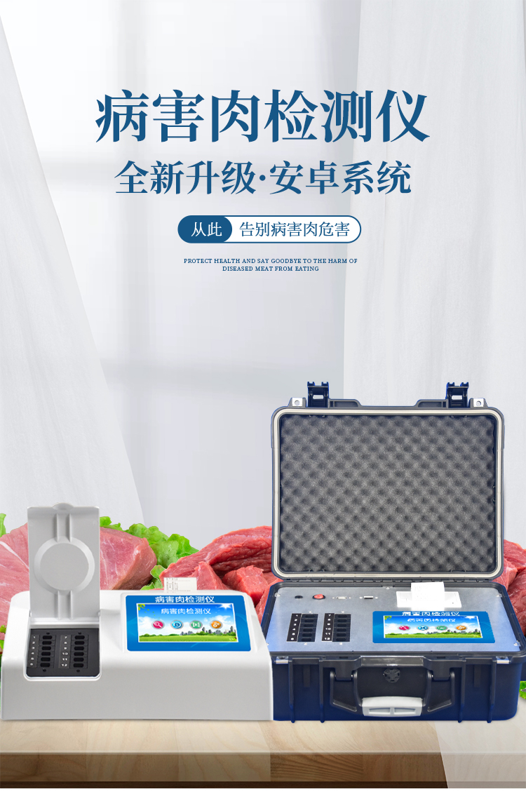 可快速檢測病害肉、組胺、揮發性鹽基氮,儀器預留其他項目檢測程序和端口,根據日后需求可方便的自主增加檢測項目。