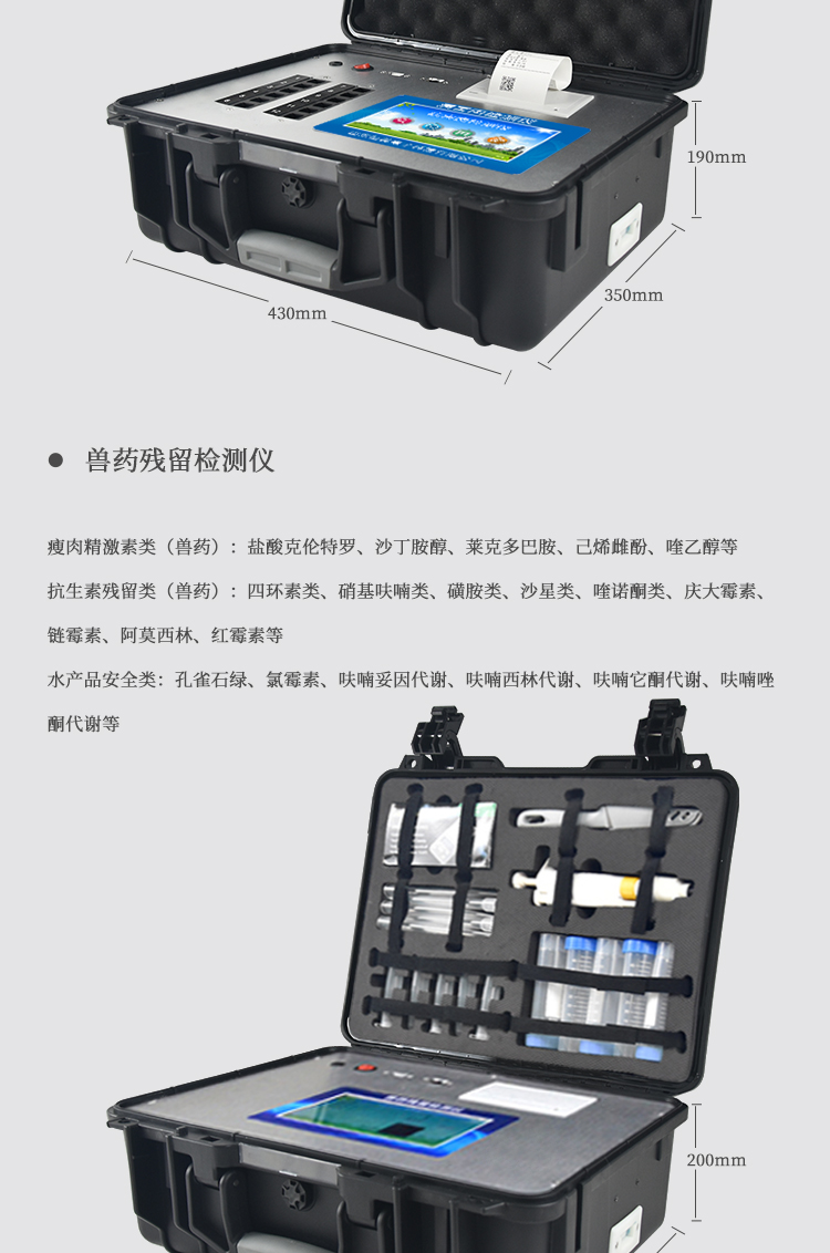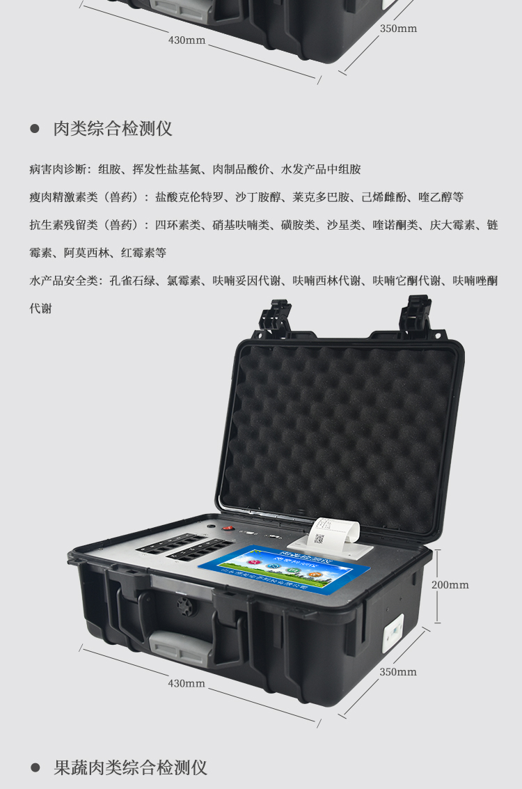 該多功能食品安全檢測儀為集成一體化食品安全快速檢測分析設備,廣泛應用于市場監管局、食品肉產品深加工企業、學校食堂、衛生部門、畜牧部門、屠宰場、檢驗檢疫部門等單位使用。