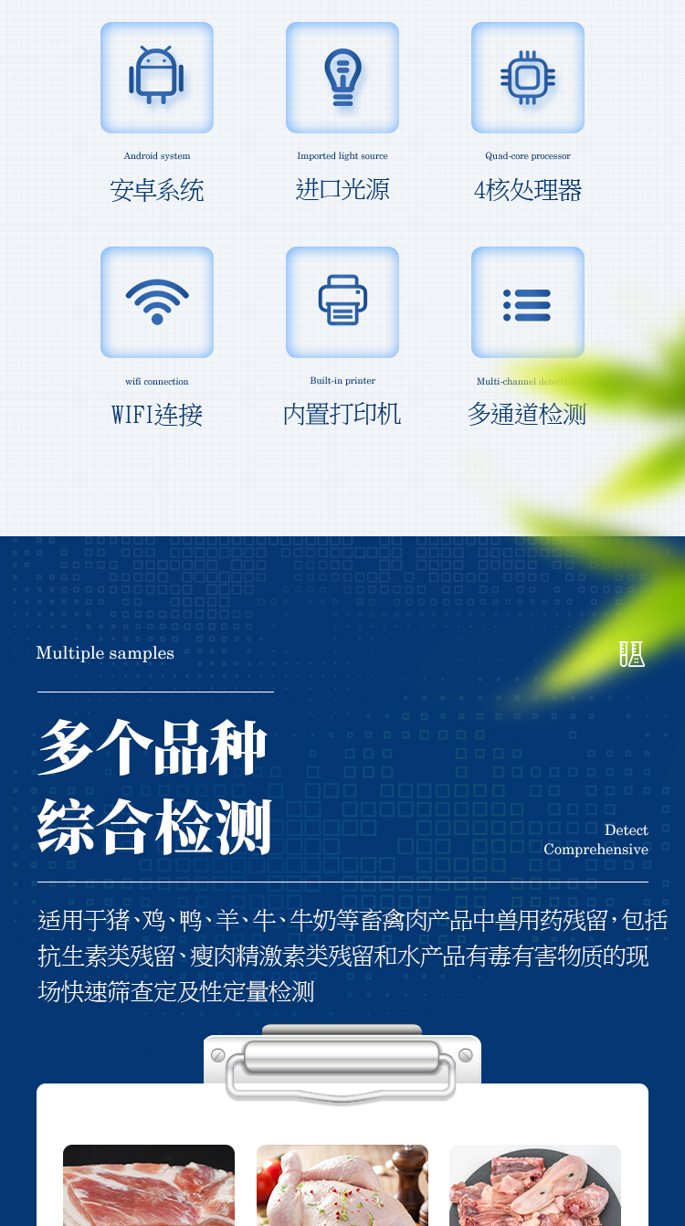 抗生素殘留檢測儀可現場快速檢測多類別抗生素類殘留,如可快速檢測四環素類、硝基呋喃類、磺胺類、沙星類、喹諾酮類、氯霉素、慶大霉素、鏈霉素、喹乙醇代謝物、硫酸鏈霉素、羧芐青霉素、噻孢菌素鈉、阿莫西林、氨芐西林、紅霉素、潮霉素B、安普霉紊、桿菌肽、氨丙琳、芐青霉家、頭孢噻呋、克拉維酸、氯羥吡啶、阿散酸等抗生素快速檢測;水產獸藥:呋喃妥因代謝、呋喃西林代謝、呋喃它酮代謝、呋喃唑酮代謝、孔雀石綠等。