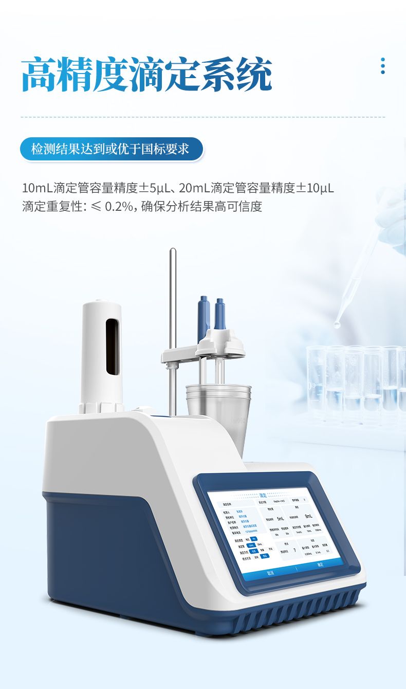 2.高精度滴定系統(tǒng),檢測結(jié)果達(dá)到或優(yōu)于國標(biāo)要求。支持滴定管快速更換,維護(hù)便捷;