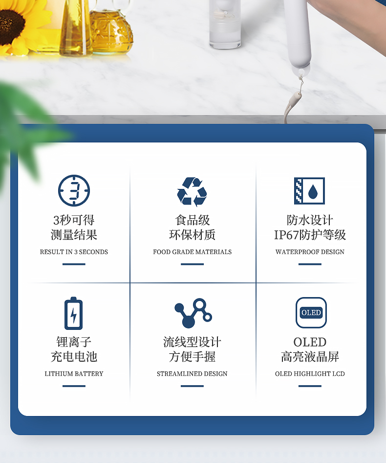 ■快速測量 3秒鐘能得到測量結果,并有不同區間品質的閃爍提示。