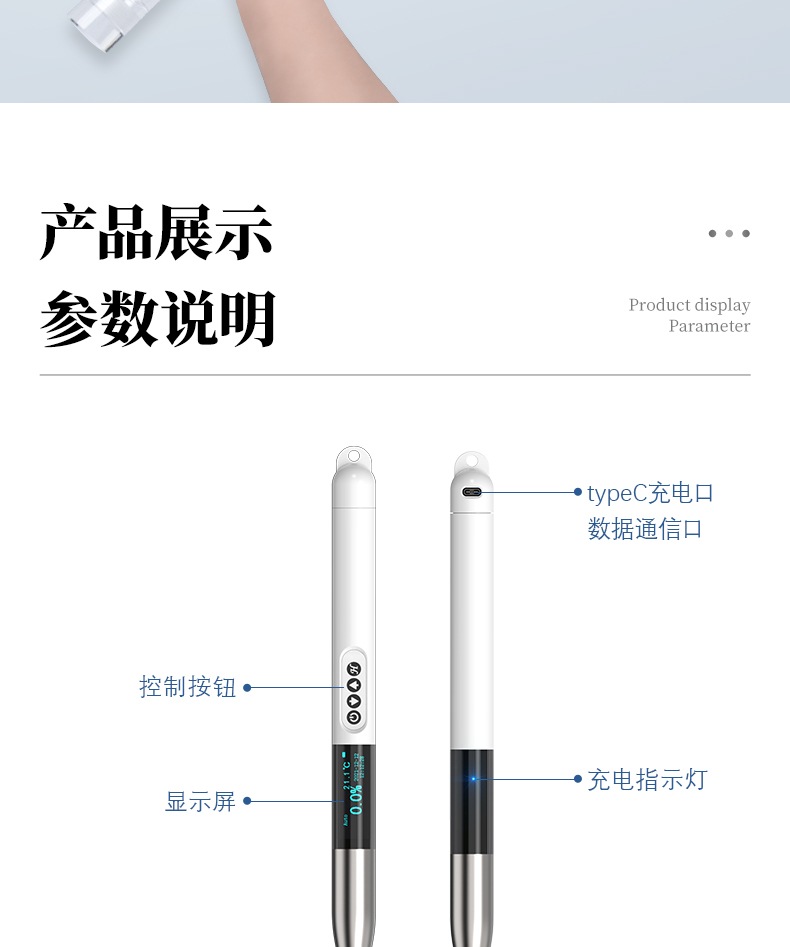 ■探頭外形采用梭形流線型設計,減少測試完成后存液掛液,同時利于擦拭清洗。
