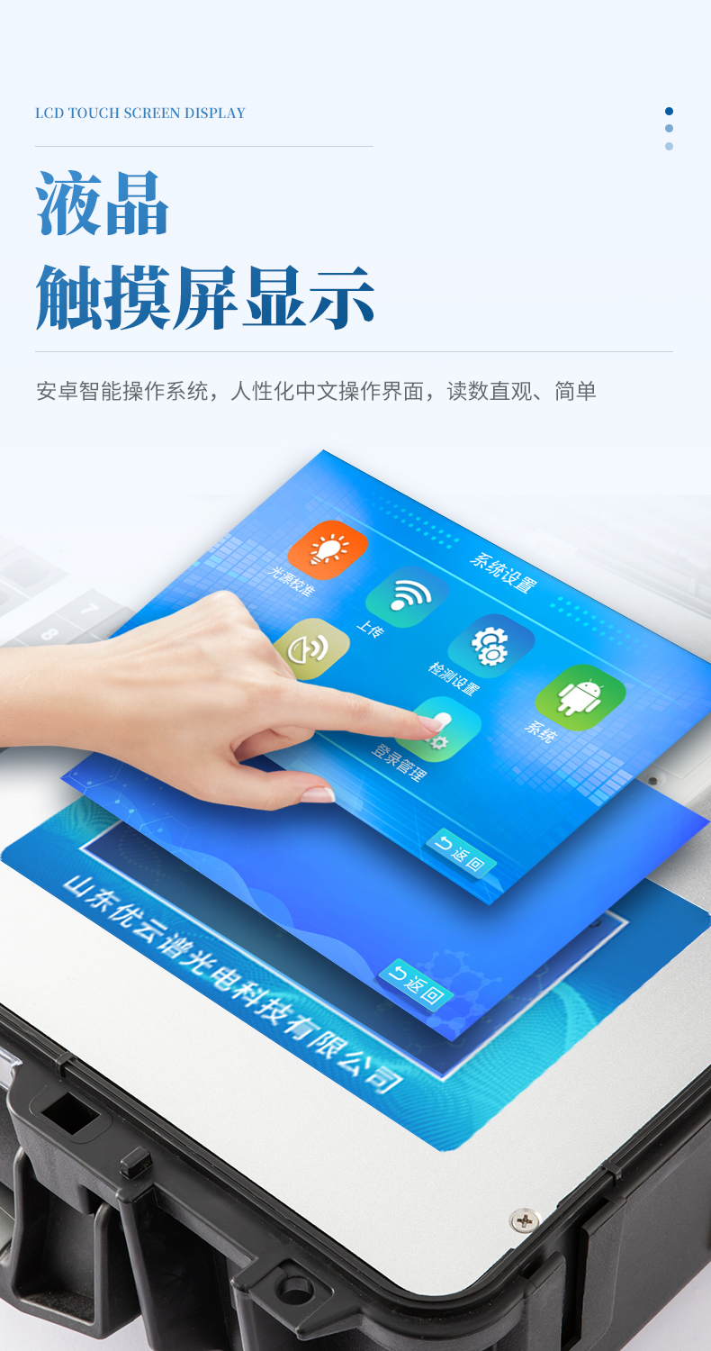 2、顯示方式:7英寸液晶觸摸屏顯示,人性化中文操作界面,讀數直觀、簡單。