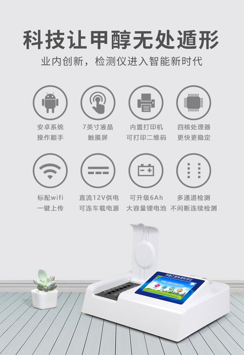 檢測(cè)項(xiàng)目:可快速定量檢測(cè)各類酒中的甲醇和乙醇的含量,儀器預(yù)留其他項(xiàng)目檢測(cè)程序和端口,根據(jù)日后需求可方便的自主增加檢測(cè)項(xiàng)目。日后可升級(jí)為檢測(cè),水產(chǎn)品,肉制品,面制品的綜合類型儀器。