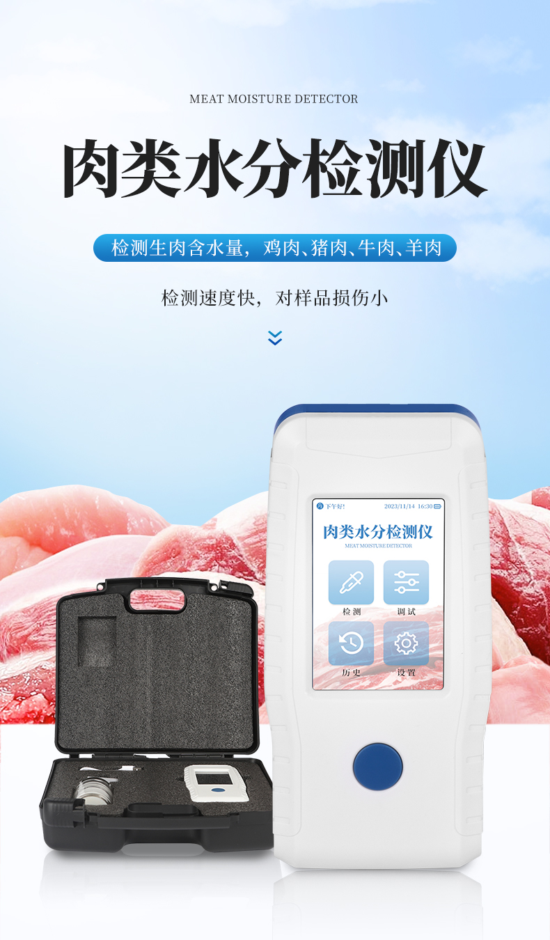 檢測生肉含水量,可檢測4種樣品:雞肉、豬肉、牛肉、羊肉。