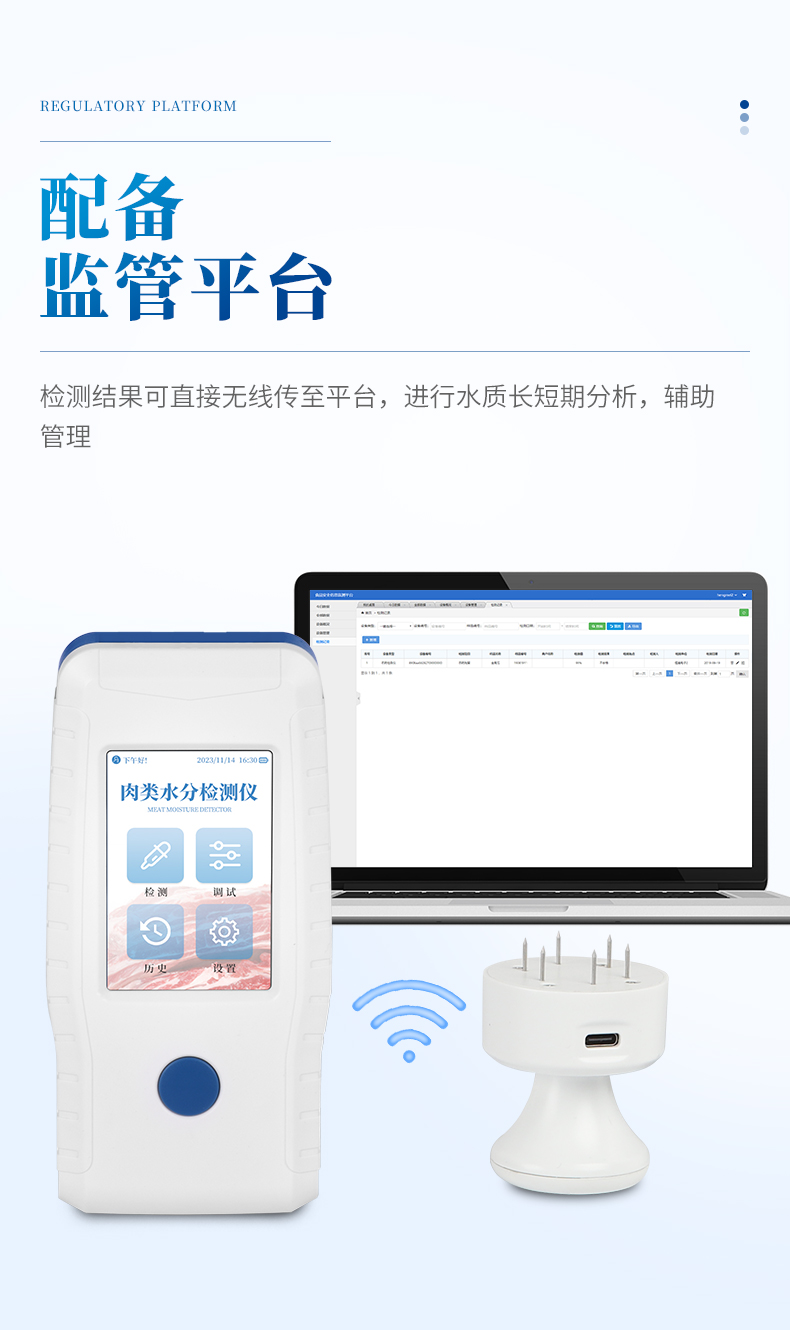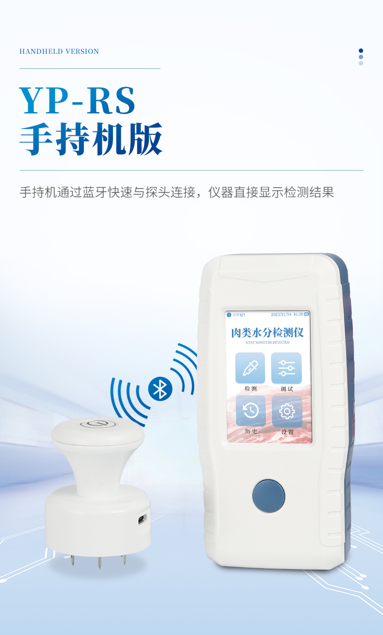 肉類含水量測定儀通過向樣品注入高頻電信號并接收回波測量生肉含水量,相比GB18394-2020國標文件中的5.2節紅外線干燥法(快速法)更快速便捷,具有不需要制備樣品,檢測迅速,操作方便的優點。