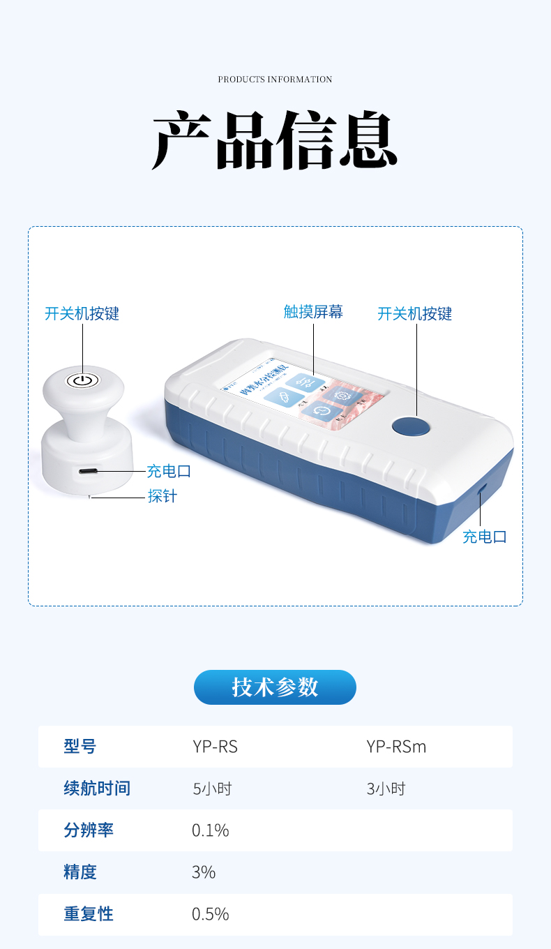 【產品簡介】重復性:0.5%;不連接充電器的續航時間:探頭3小時