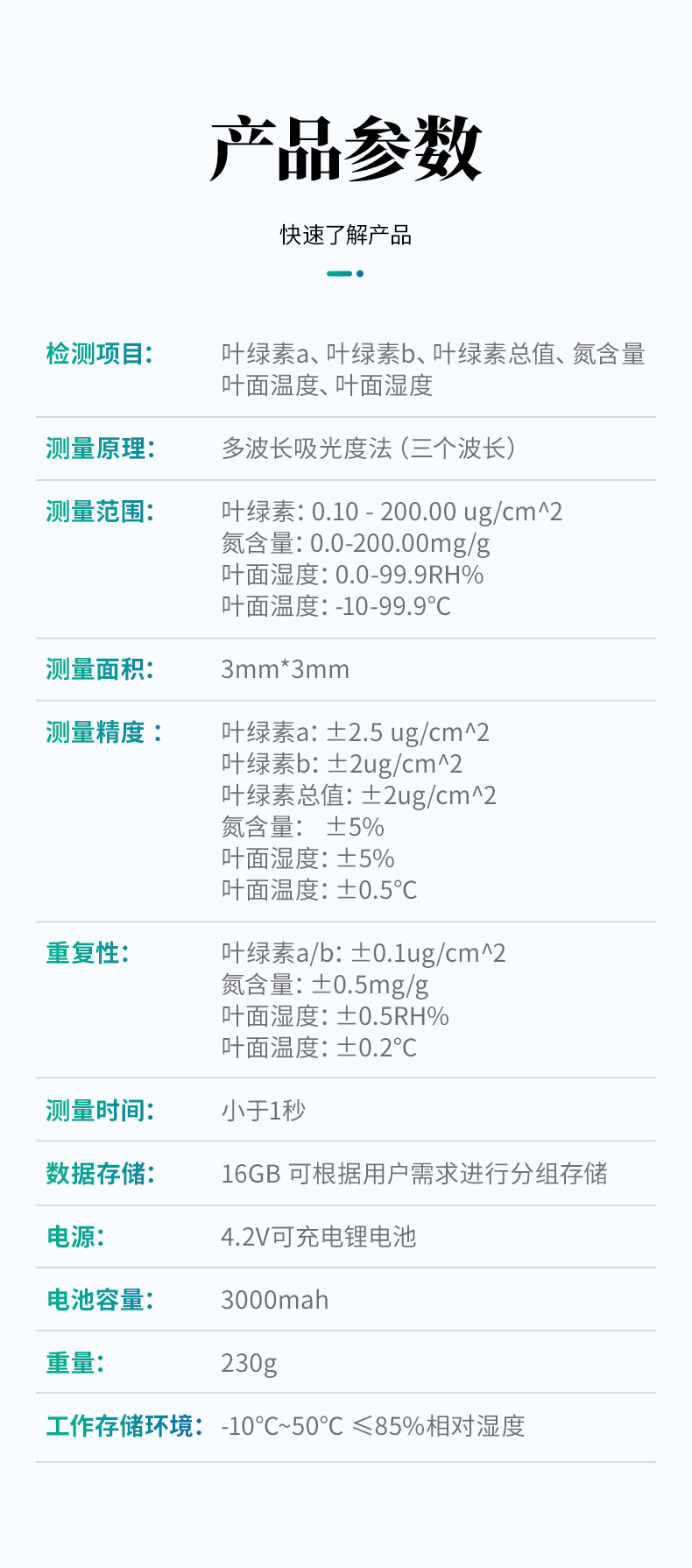 氮含量:±0.5mg/g  葉面濕度:±0.5RH%  葉面溫度:±0.2℃