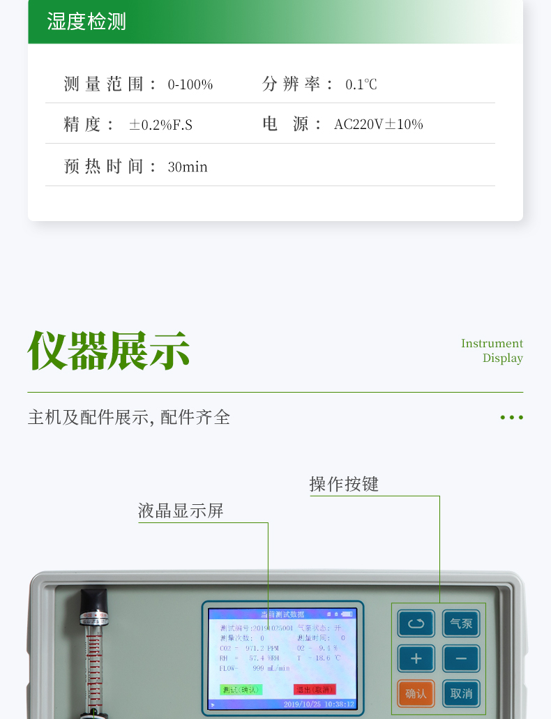 加入了溫度調節的雙波長紅外二氧化碳分析器,二氧化碳測量不受溫度變化影響,具有穩定、精度高,反映靈敏,1秒鐘之內就可以完成二氧化碳差值采集。